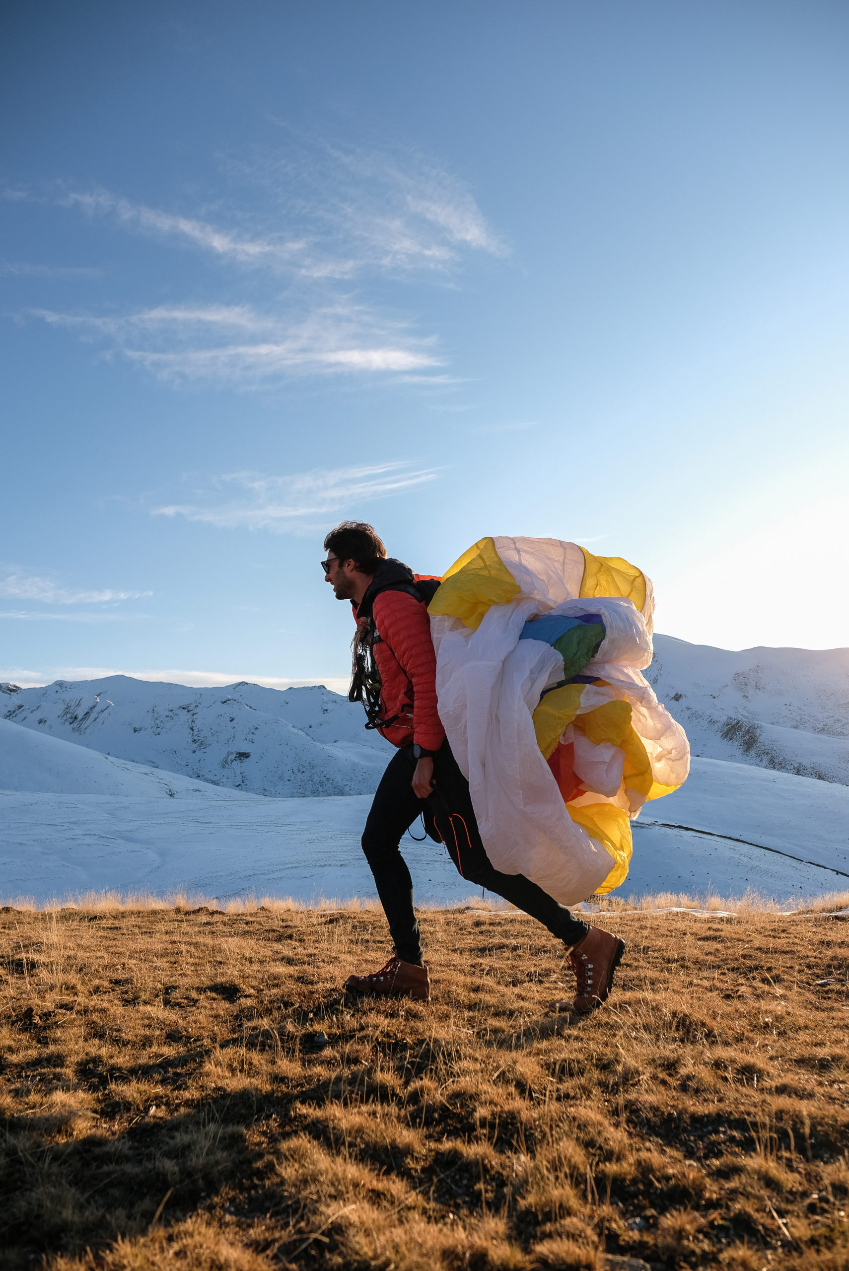 Depuis 2 mois, Camille ne voyage plus sans sa voile de parapente. L’occasion pour lui de partir à la recherche de nouveaux spot pour voler. Et ce jour là, à peine arrivés, nous avons été plutôt gâté. Enfin seulement pour la facette météo mais les conditions aérologiques ne lui ont pas permis de décoller. Il s’est donc rabattu sur du gonflage de sa voile. Et vous savez quoi, c’est tant mieux car il avait conservé les clés de voiture sur lui.