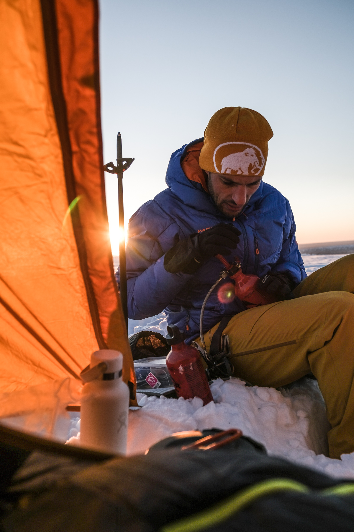 A titre d’exemple, nos barres de céréales + les carrés de chocolat +  pâte d’amende ont littéralement congelés lors de notre premier bivouac en Laponie. En gros avec les -18°C, c’est un peu comme si nous avions dormi dans un congélateur.