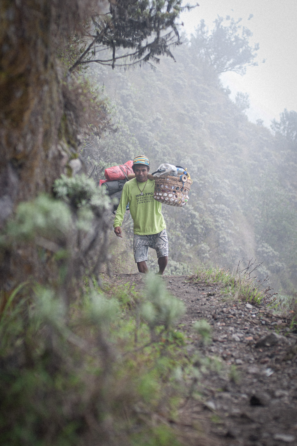 Ce qui me surprend le plus, ce sont les conditions dans lesquelles progressent nos porteurs. En tongs et chargés du matériel dans leur lourds paniers.