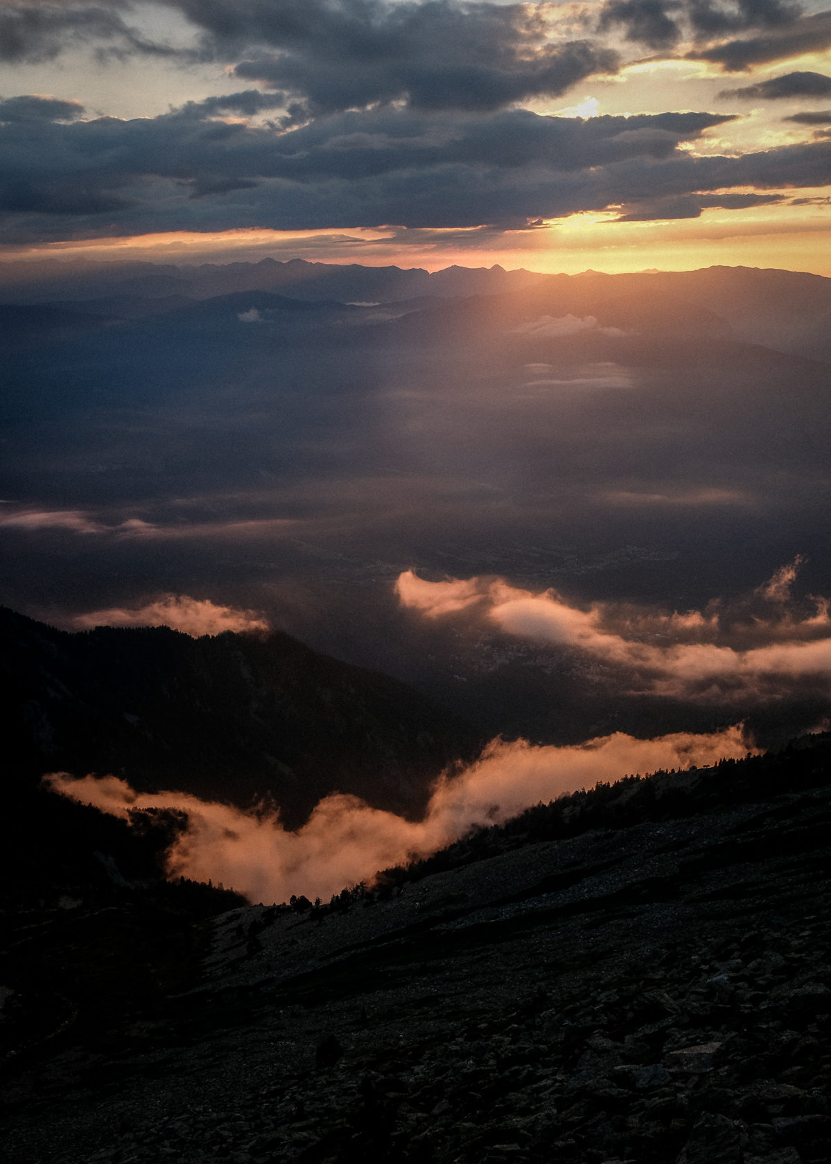 Le lendemain matin, la lumière étaient spectaculaire. Et qui dit vue EXTRA-ORDINAIRE dit foule de 10 personnes au Pic dès 5H30 du matin. Du coup, s’extirper du duvet fut bien plus difficile que d’habitude.