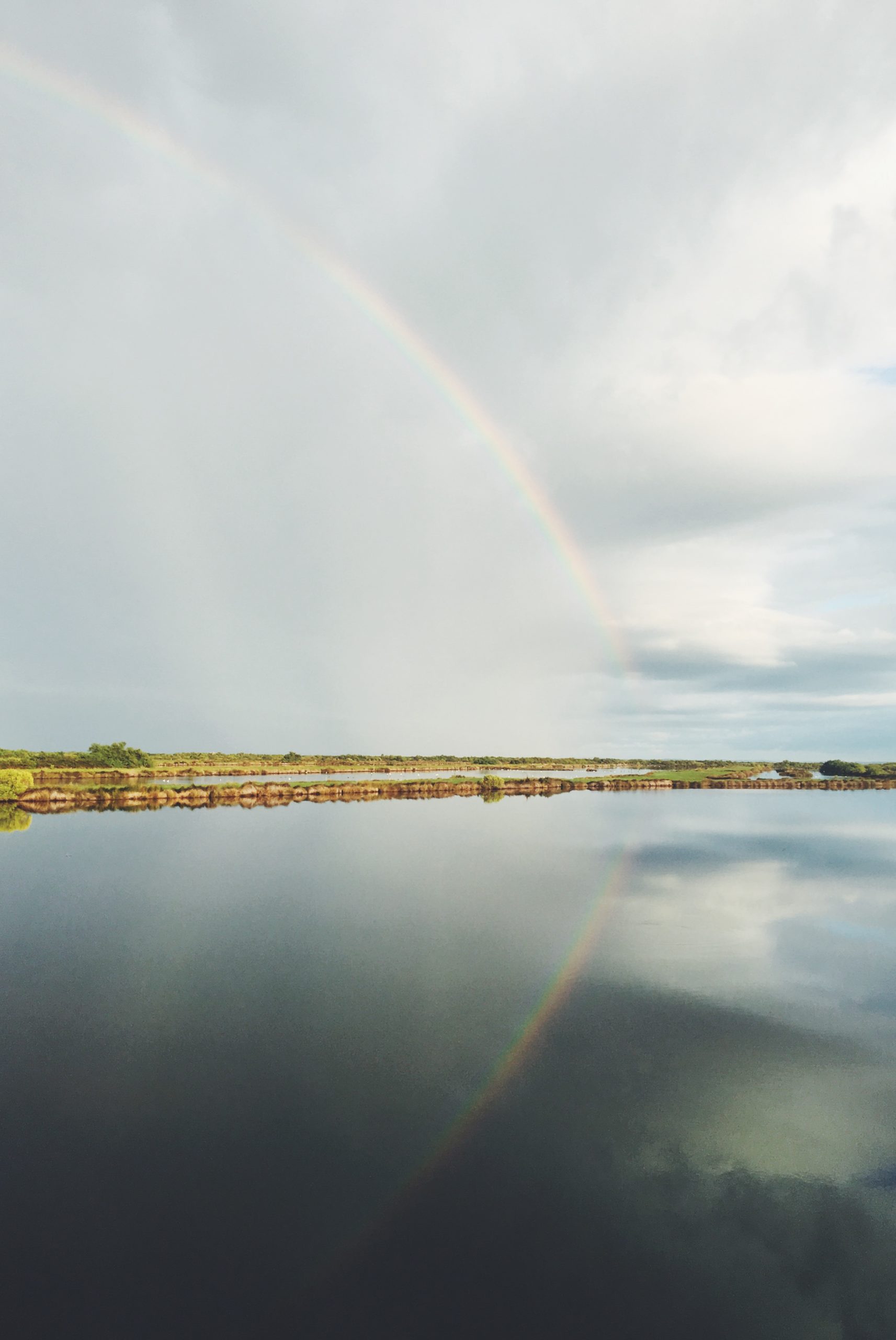 On marche à la recherche d’animaux. Quelques mètres à peine parcourus, une pluie fine s’invite dans le paysage. Ce moment peu agréable se transforme en un beau spectacle imprévu avec l’apparition d’un double arc-en-ciel qui se reflète dans l’eau.