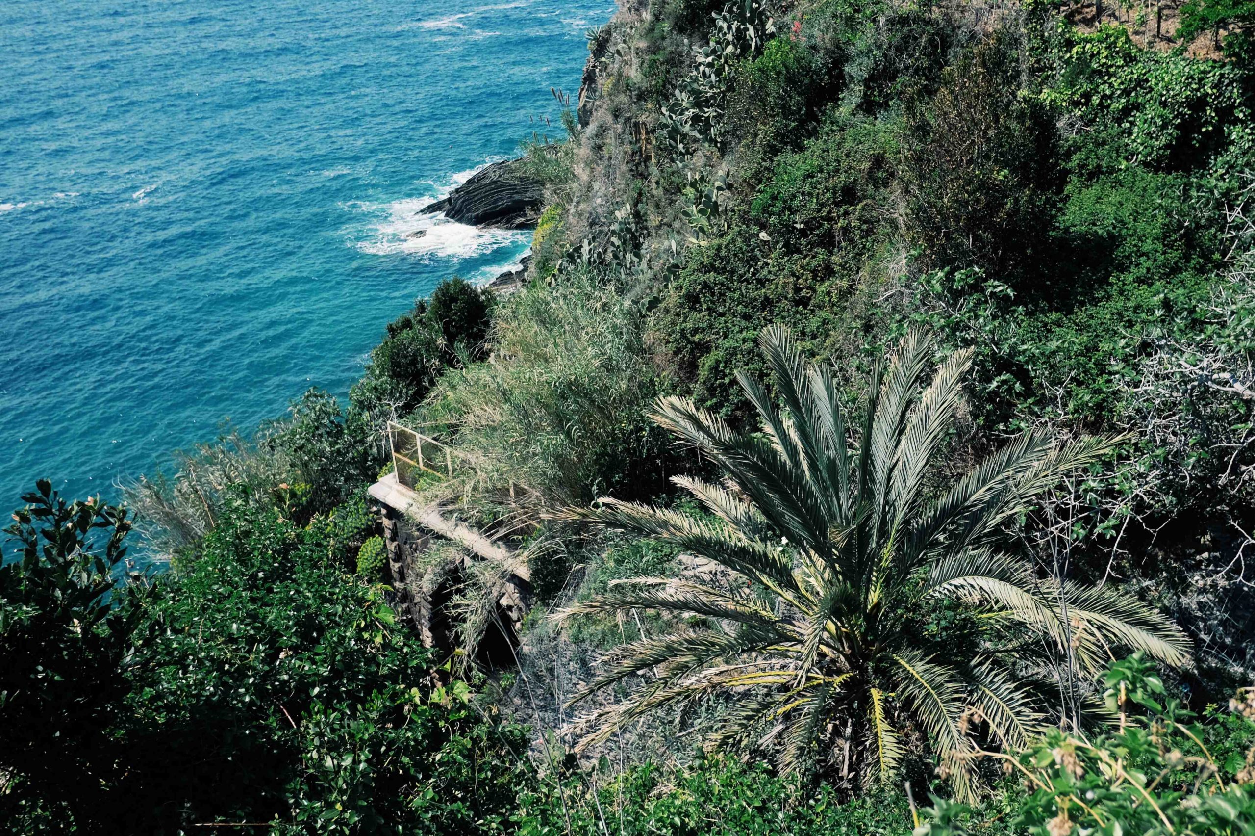 Dans les hauteurs de Vernazza, on ne compte plus le nombre de marches et ce n’est pas Marie qui dira le contraire. On avance dans une végétation plutôt dense & sauvage. Les citronniers en fleurs seront présents pendant tout le trajet mais pas seulement. La culture des vignes en cascades restent incontestablement en majorité. La configuration nous donne ce sentiment de redécouvrir les rizières d’Asie.
