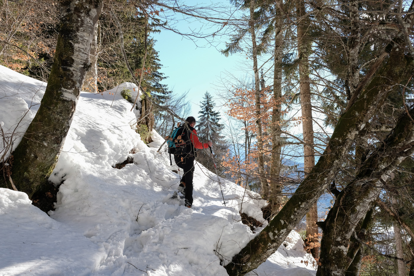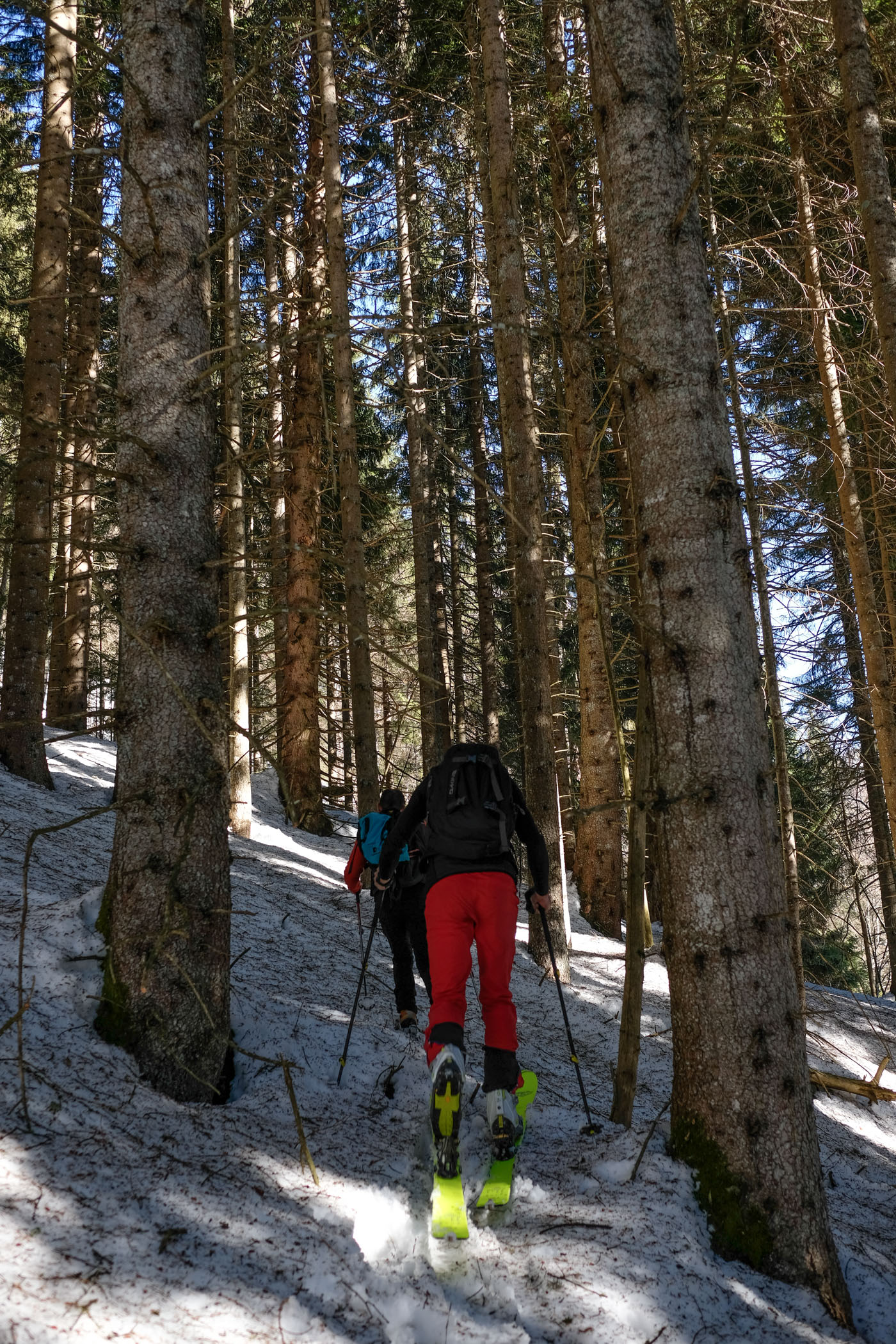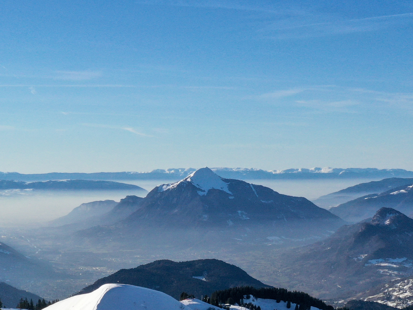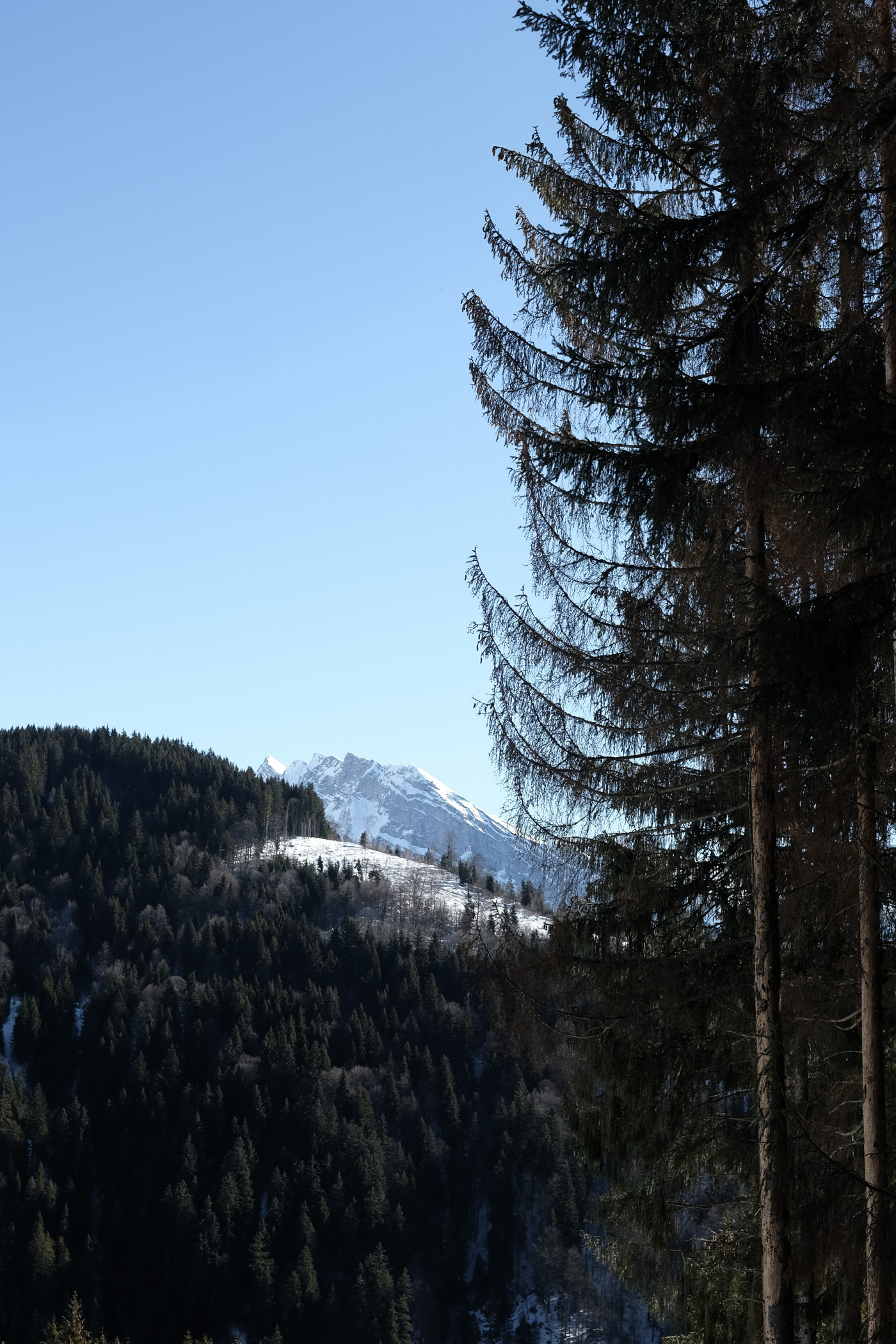 En ski de randonnée pour Camille et raquettes pour Max et moi, on entame le départ dans une jolie forêt boisée. Mais avant de faire quelques virages et slalom entre les sapins, on a pu admirer le Mont-Blanc.