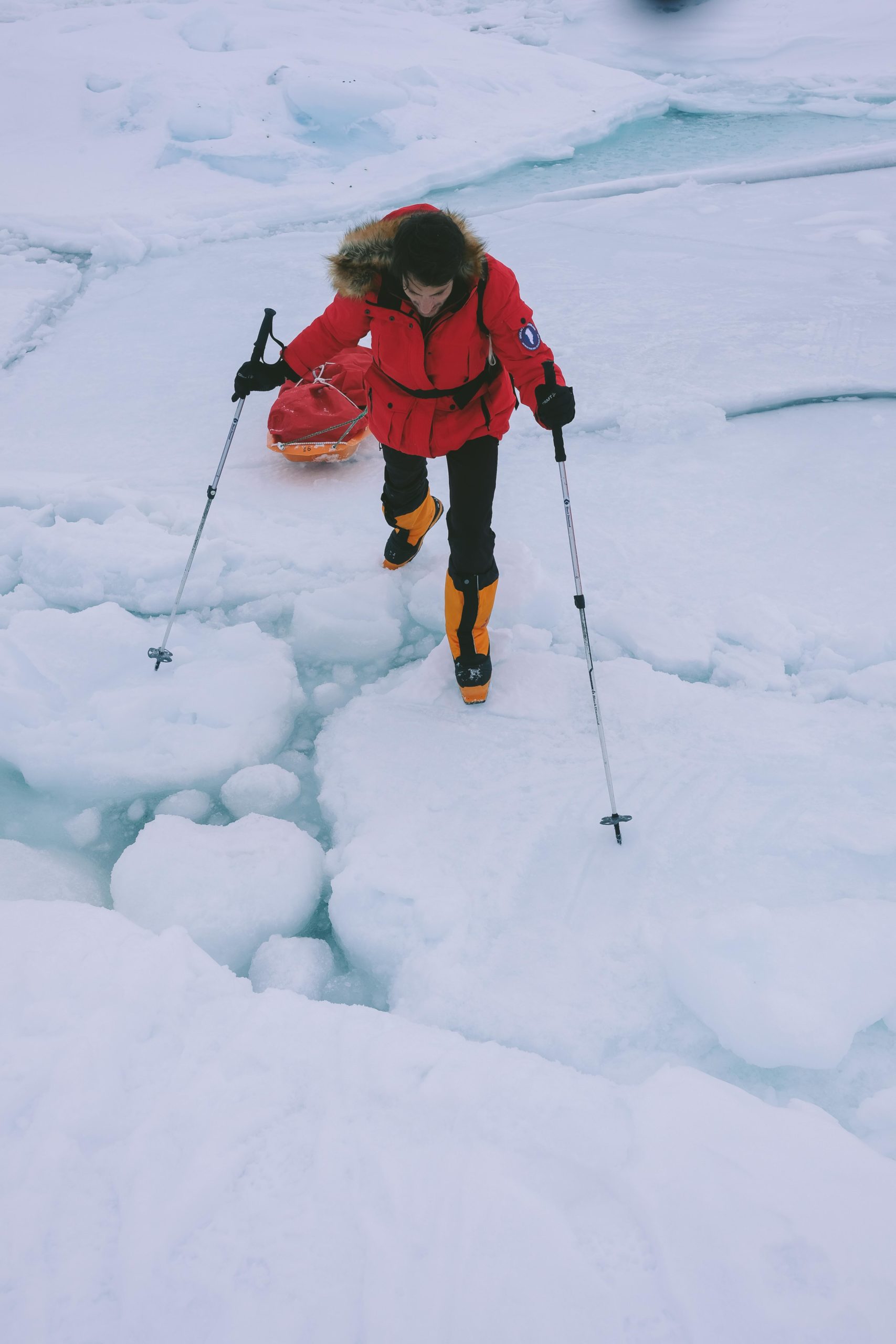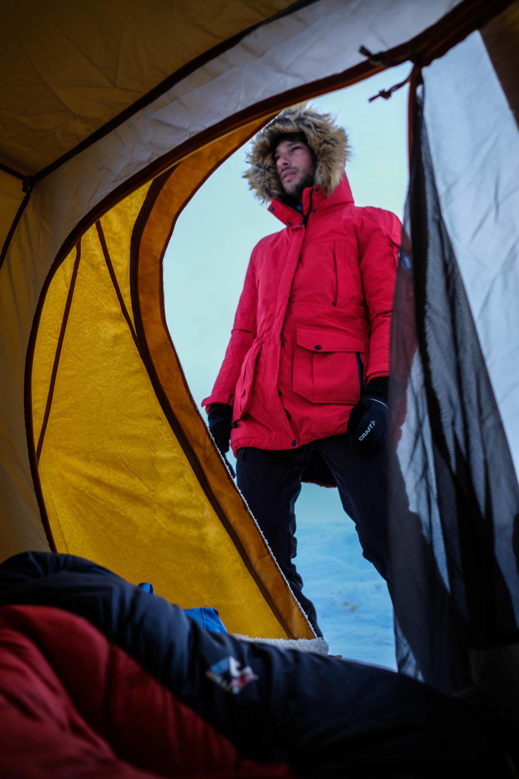 Pendant l’effort, Camille recule de 15 mètres. Embarqué en arrière par le poids de sa Pulka, il n’a pas pu lutter. C’était impressionnant. J’observe les traits de son visage déjà tirés en m’interrogeant vraiment sur nos chance de succès. Sans trop réfléchir à l’après, je m’efforce d’avancer en jetant un œil à droite et à gauche de peur de croiser un ours.