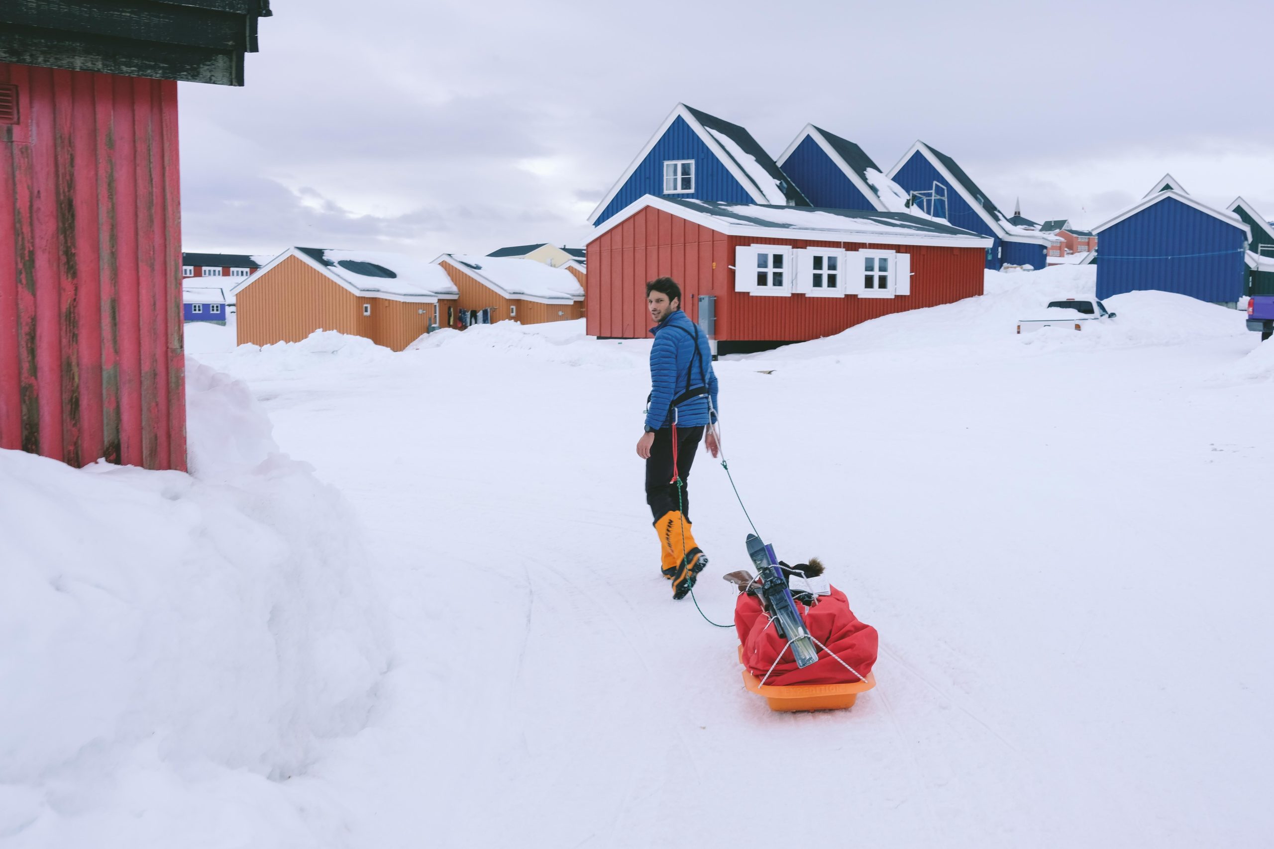 On prend possession d’une minuscule chambre dans un bâtiment annexe avant de décider d’aller explorer la banquise et les alentours du village. Je dois avouer qu’on prend à peine le temps de se poser mais c’est tellement une chance de vivre cette expédition au Groenland qu’on veut profiter rapidement de découvrir cette vie sur place. Et puis en traversant le village de Tasiilaq en ski, on arrive au bord d’un petit port.