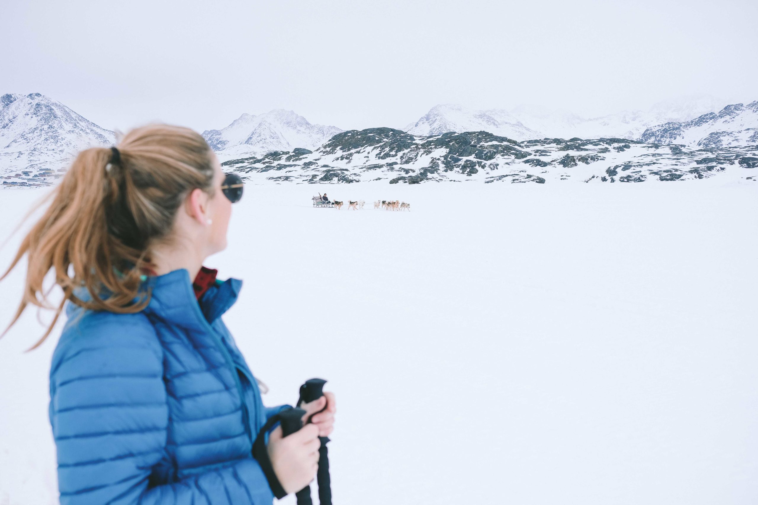 Ce moment est magique. Je me répétais inlassablement : « On est au Groenland en ski nordique et pulka à admirer ce traineau passer sous nos yeux » !
