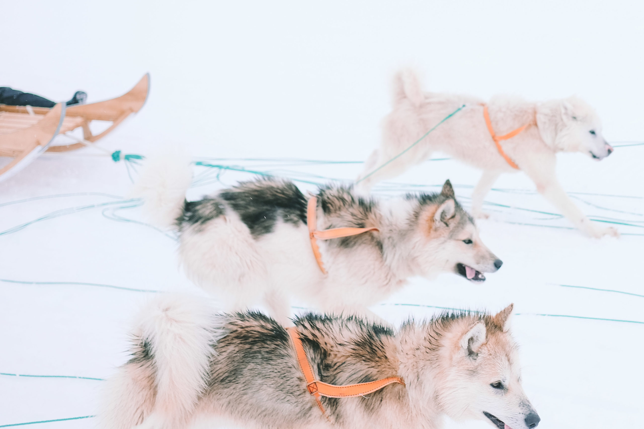 5 kilomètres avant de regagner Tasiilaq, on croise un traîneau à chiens dans le virage. Je ne parviens pas à me déplacer rapidement sur ma droite. Pas le temps de comprendre ce qui m’arrive, je me retrouve dans le cordage de cette douzaine de chiens de traineaux. Un chien passe par ma gauche, l’autre à droite et là c’est le piège. Bloquée et emmêlée dans cette toile d’araignée géante, je me retrouve à terre en train de crier.