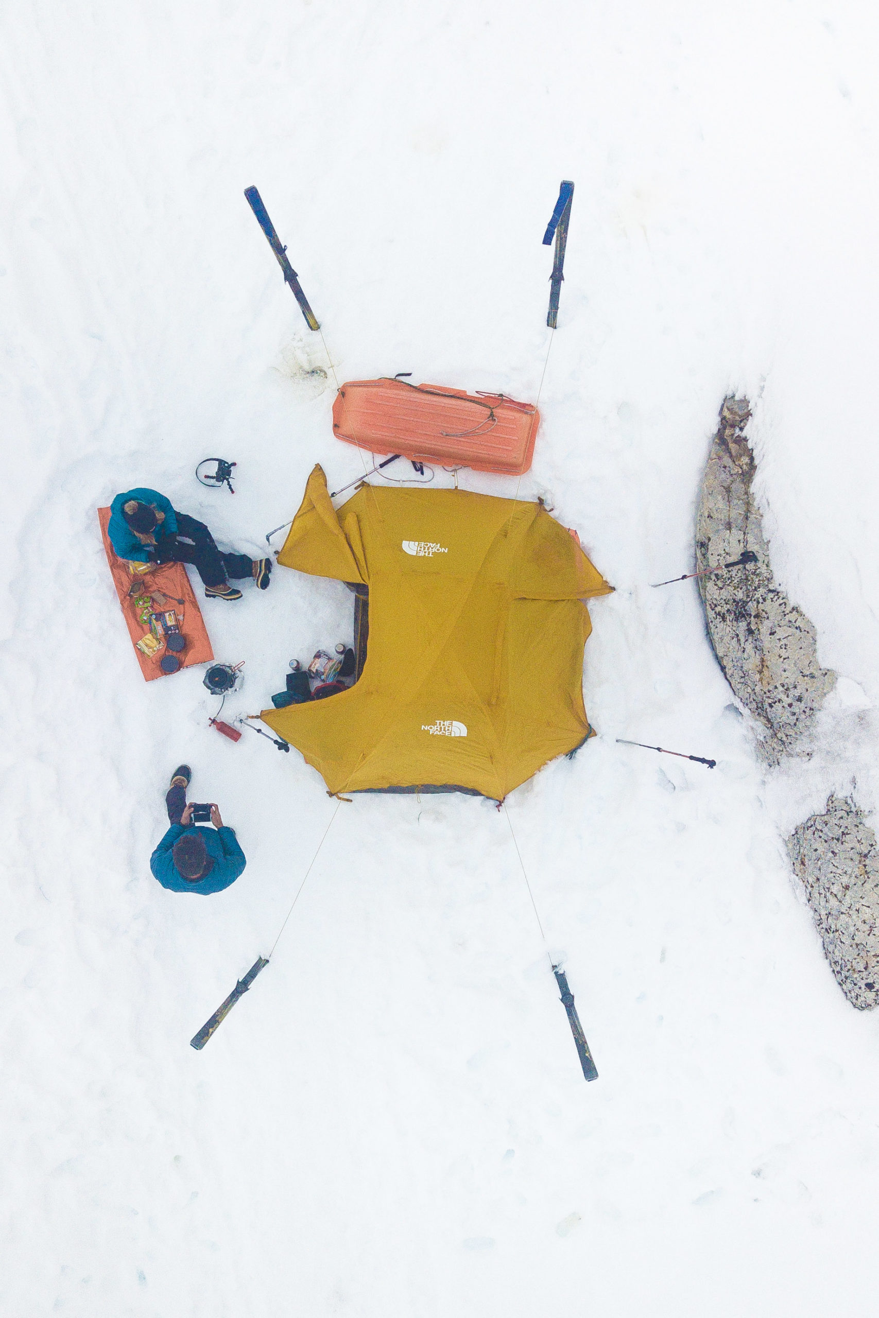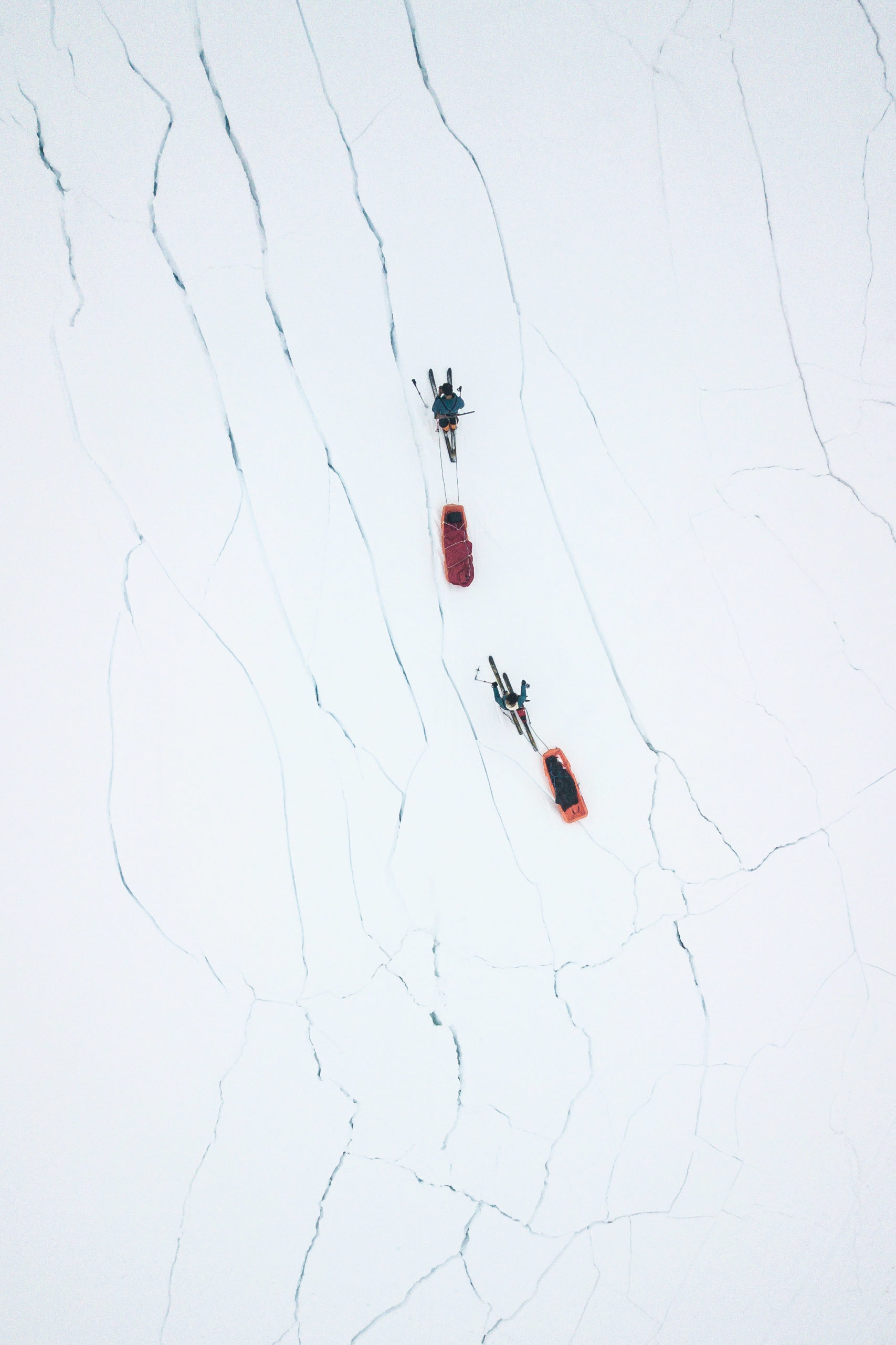 Le décor est tout blanc, pas un soupçon de montagne à l’horizon, pas de végétation, seulement deux points rouges dans cette immensité.