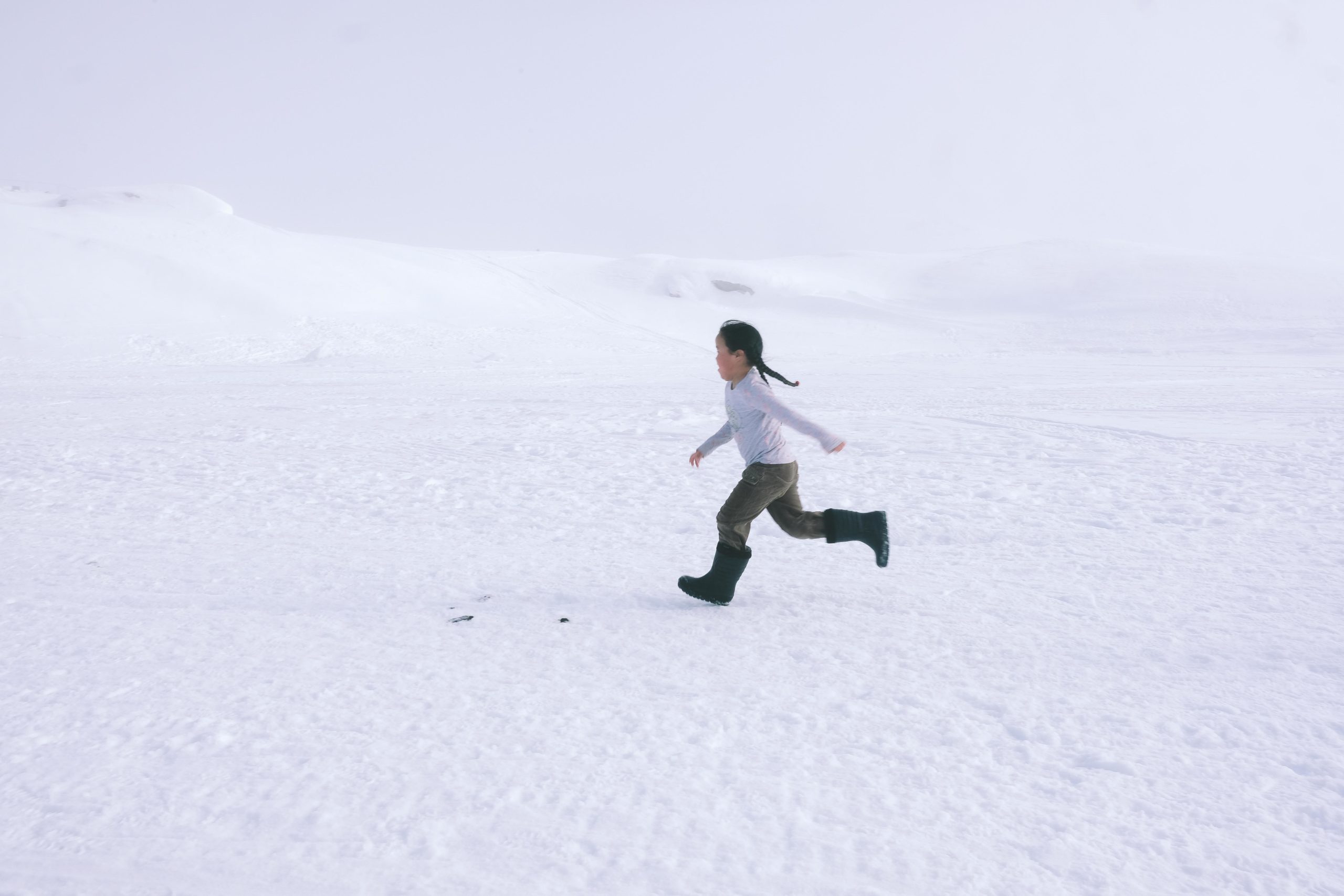 Noé et Nudia, deux jeunes enfants du village, nous suivent. Un coup ils sautent sur le dos de Camille, et un autre sur le mien. Je crois tout de même qu’ils ont eu une préférence pour les bras de Camille. Il faut dire que sa grande taille les attire pour jouer. Plus haut ils s’accrochent sur lui, plus ils sont contents ! C’était vraiment amusant. Entre glissades sur la neige et éclat de rires on s’est dit qu’ils avaient vraiment l’air heureux sur leur banquise.