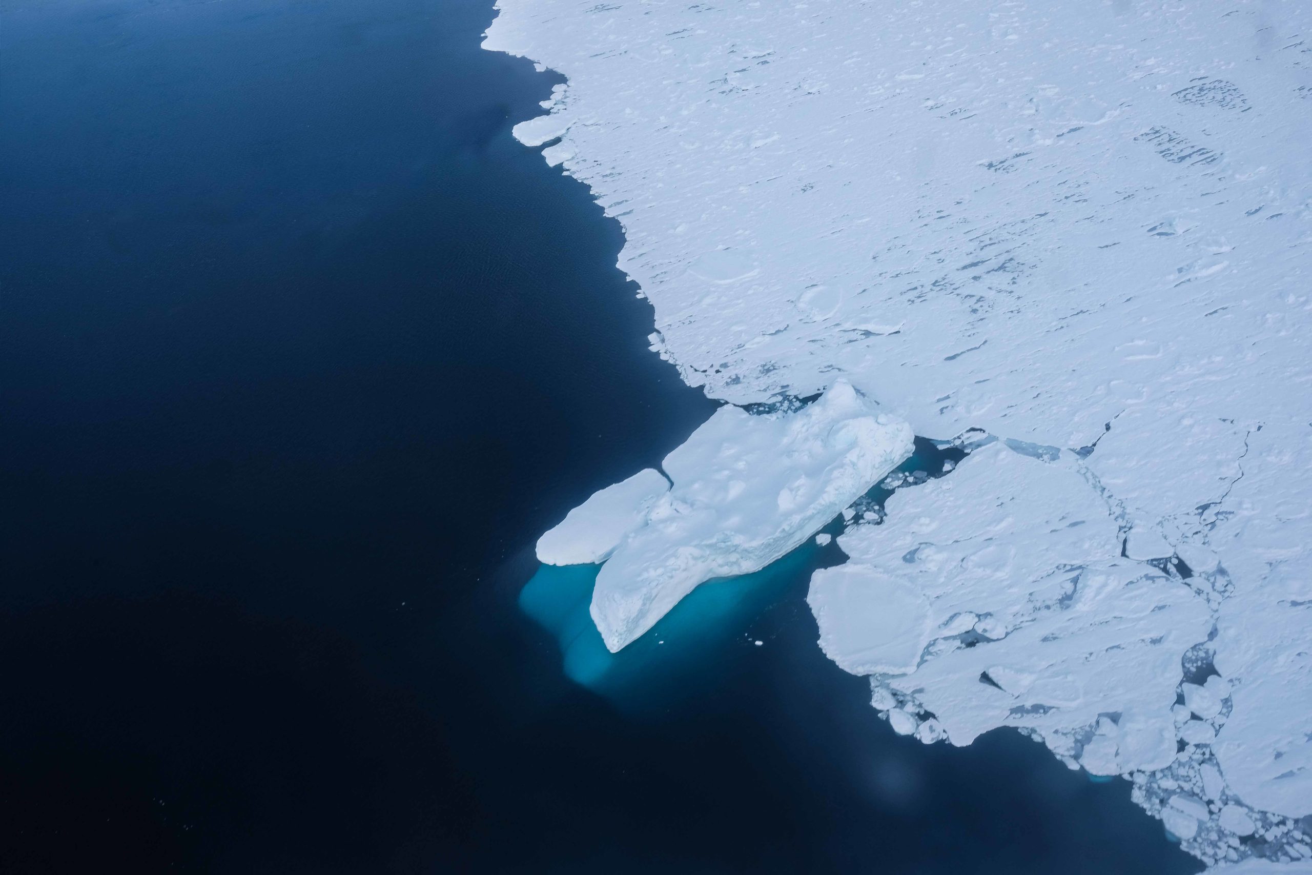 Et puis après quelques mètres d’initiation au ski nordique sur la banquise, des reflets turquoises contrastent avec l’ambiance grisâtre de la journée.