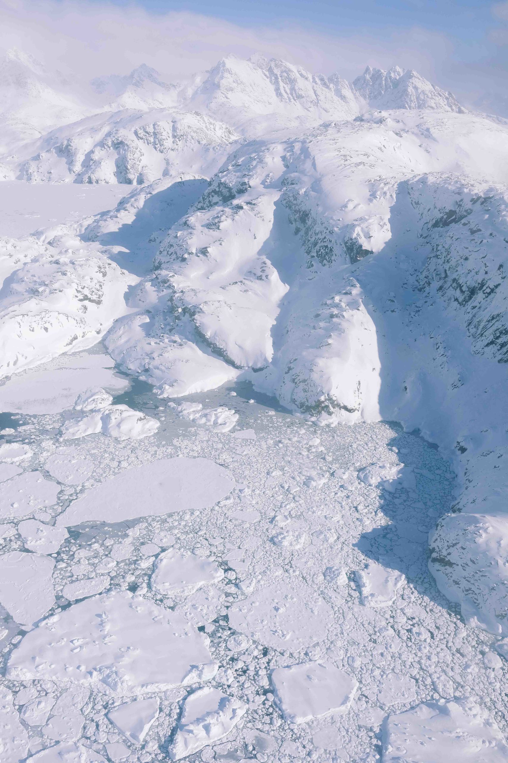 Nous sommes seulement 6 dans un avion de 21 places. Ceci n’est qu’un avantage à mes yeux, avoir la possibilité de se déplacer facilement pendant le vol pour jouer des différents points de vue depuis le hublot. Sous un joli soleil d’hiver, la vue est irréelle à l’approche des glaciers.
