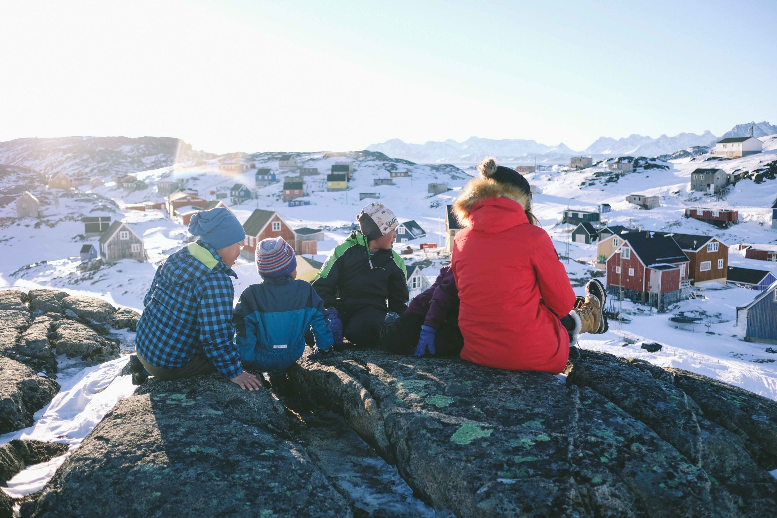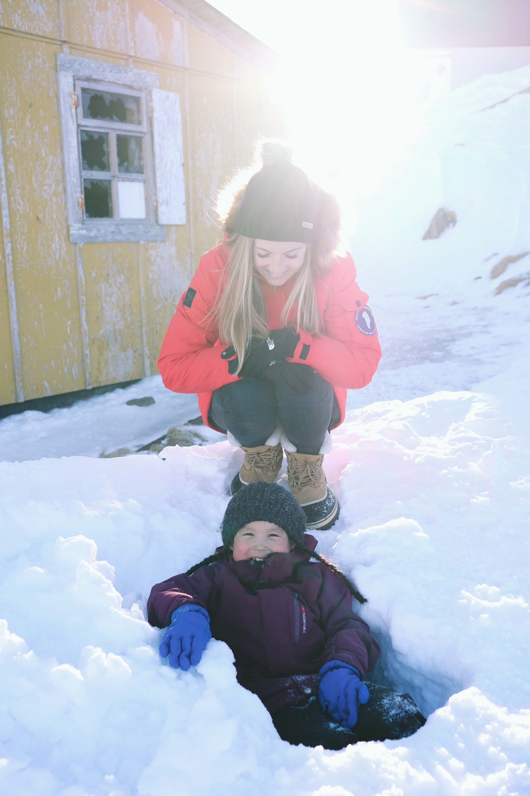 Voila comment nous sommes devenus l’attraction des enfants. Jouer à s’en épuiser sans vraiment réaliser que nous étions enfin arrivés au Groenland.