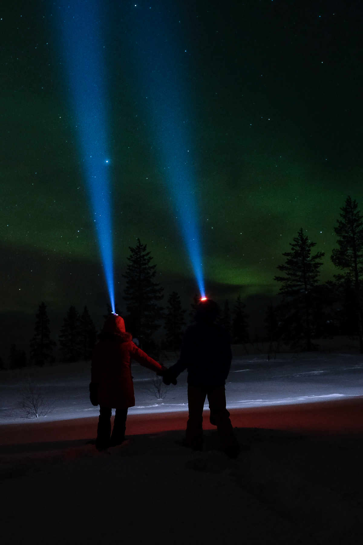 Vers 22h30, on débarque Au Fell centre Kiilopää (tout confort juste en face du Uhro Kekkonen National park. Mais avant de passer une bonne nuit réparatrice on a eu la chance d’assister au même spectacle que depuis le hublot de l’avion : celui des aurores boréales qui dansent dans le ciel.