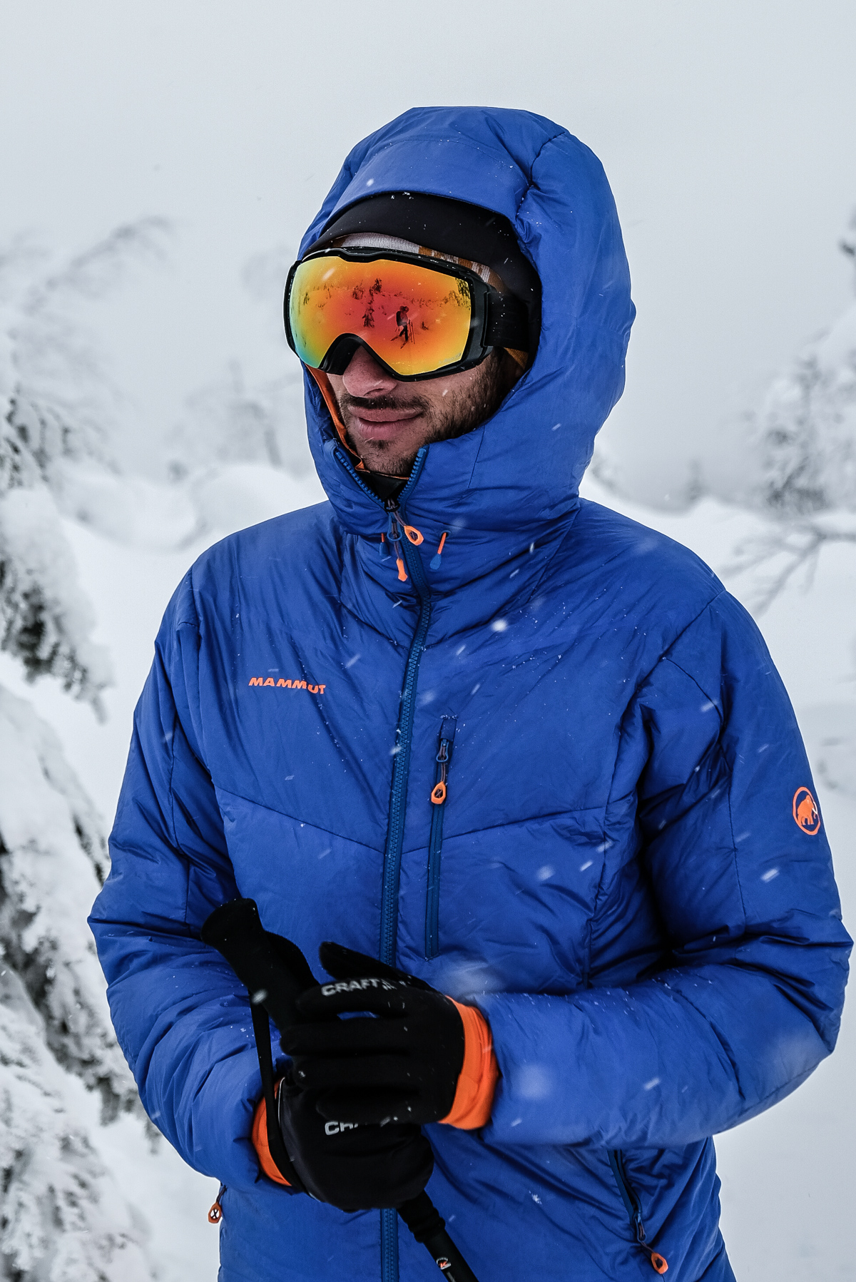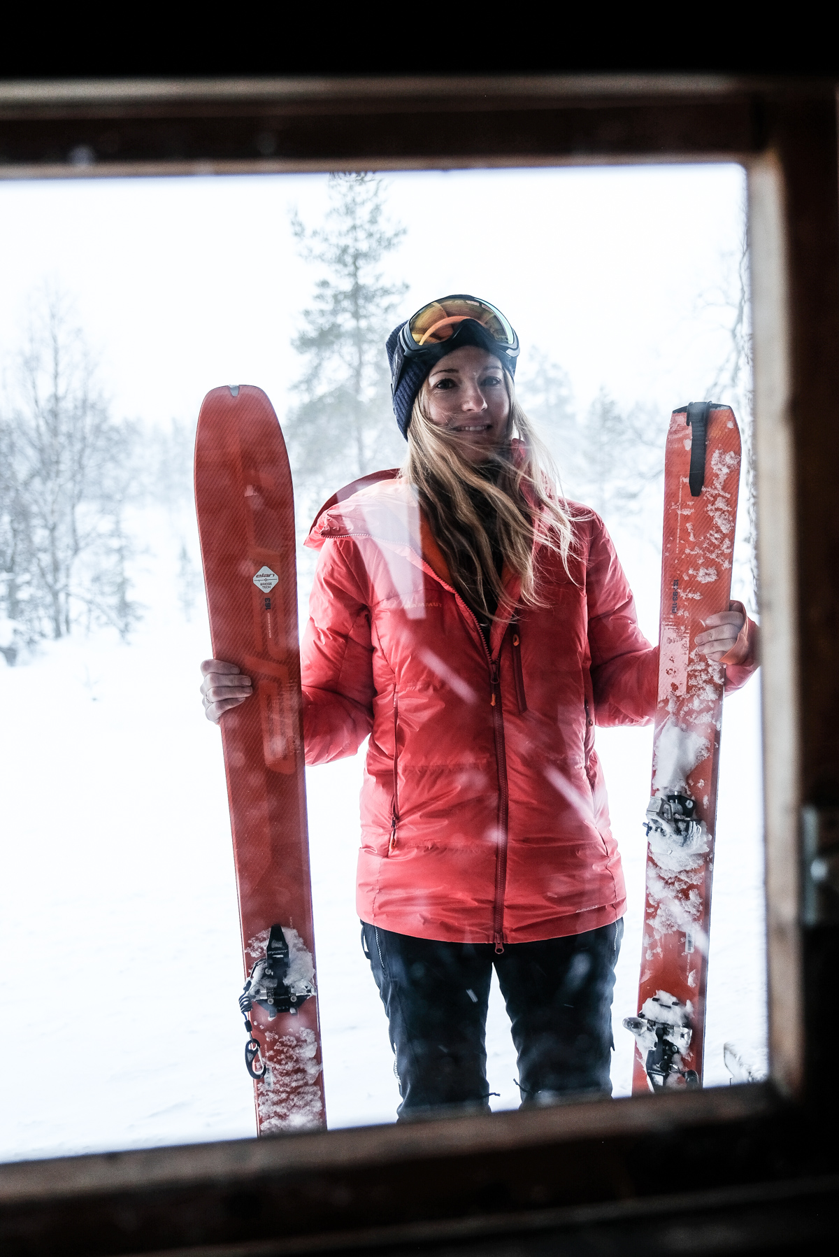 Skis chaussés, prêts à démarrer, nous savons par avance que cette journée, sous la tempête sera compliquée. Les rafales de vent sont prévues aux alentours de 60-70km/h. « Ça va secouer dans les sapins enneigés » ! Et puis, pour ne rien faciliter, on n’y voit pas à 20 mètres ! C’est assez déstabilisant & angoissant pour progresser.