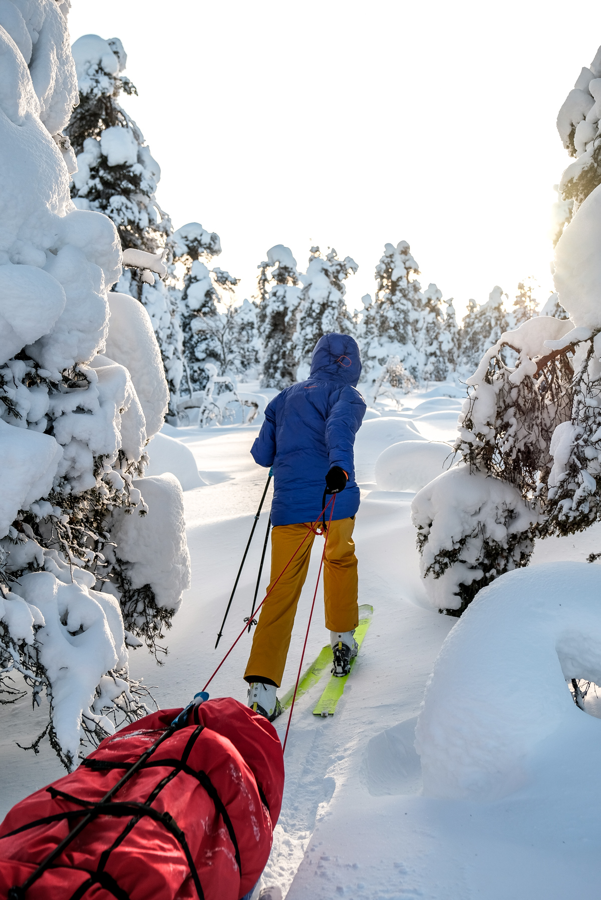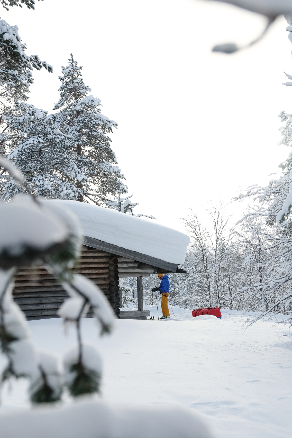On progresse dans la poudreuse en direction de l’objectif : Atteindre une cabane à une quarantaine de kilomètre dans le parc d’Urho Kekkonen à la découverte de ce sauna perdu finlandais.