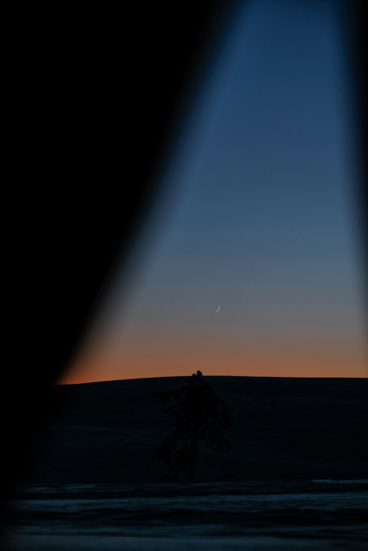 On s’avance alors sous une grande arche en bois qui symbolise l’entrée du Parc Urko Kekkonen. Après quelques centaines de mètres sur des pistes de ski de fond, j’hume cette nature, ce froid sec qui pénètre mes narines sans même vraiment ressentir le froid. Le ciel est un peu couvert. Mais vers 16h00, la lumière se révèle. Elle est particulièrement belle jusqu’à nous offrir un magnifique coucher de soleil !