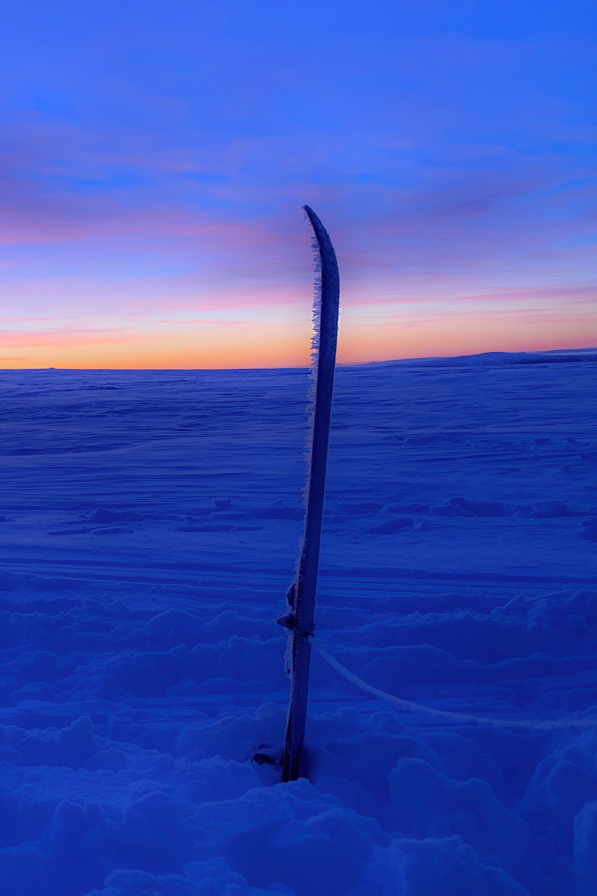 On décide alors de s’arrêter sur un col pour notre premier nuit. Motivés comme jamais on commence à tasser la neige avec la pelle. Je range rapidement les peaux de phoque pour ne pas qu’elles gèlent. (erreur déjà commise lors de notre expédition de 2018 au Groenland). Ces premiers moments sont uniques. On prend très vite conscience de la chance d’être face à ce spectacle, seul dans ce silence.