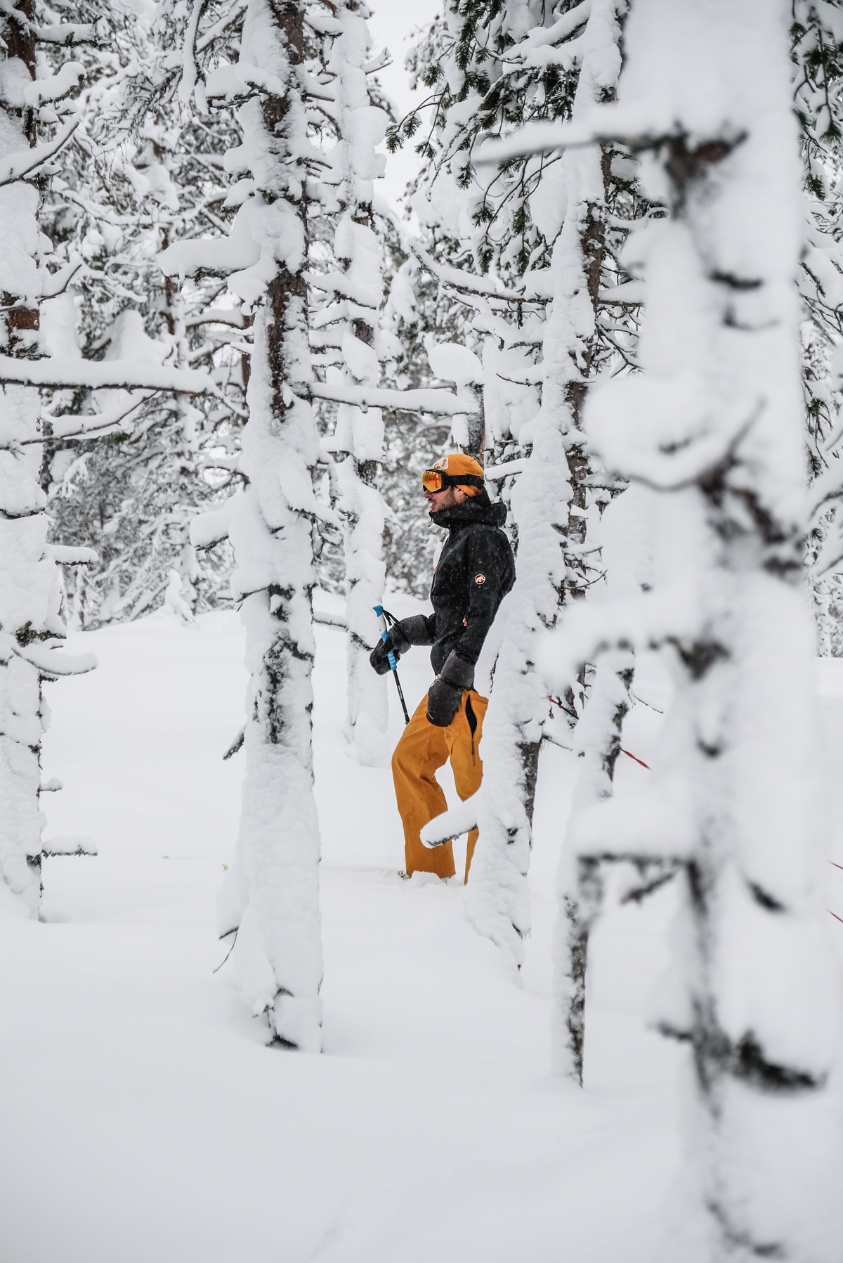 Ensuite s’en est suivi une nouvelle portion à ski dans la forêt enchantée. Vers 15h00, il était temps de s’arrêter. Ce n’est pas vraiment le froid qui m’a irrité mais la fatigue de la journée. On installe à nouveau le campement. On tasse à nouveau la neige à l’aide de nos skis : Un bonne astuce pour rester au chaud ! Chacun de nos gestes est rodé on pourrait déplier la tente les yeux fermés.