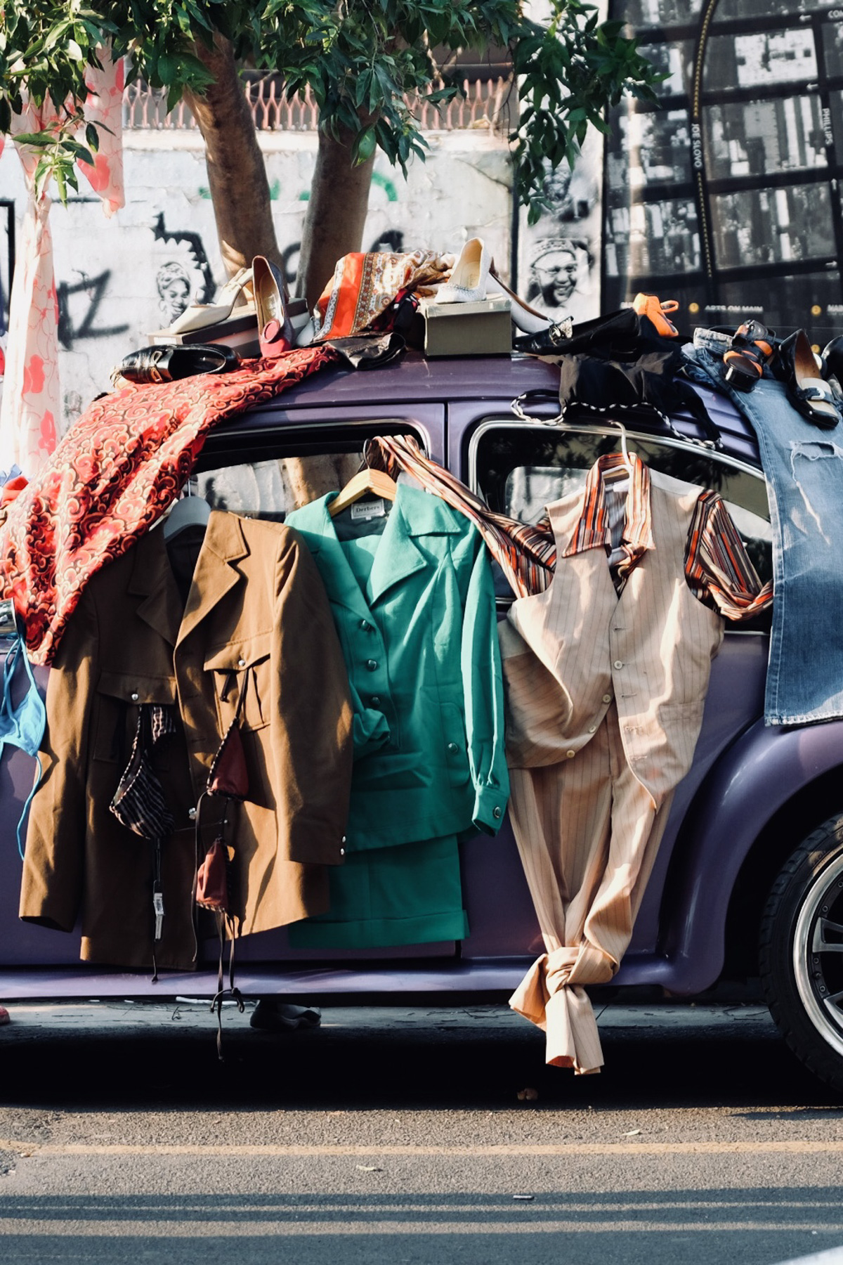 Depuis la fenêtre de la voiture, j’observe le paysage. Le ciel est parfaitement bleu et la circulation peu dense. Soleil au zénith,  il fait déjà très chaud ! Les routes sont bordées de sublimes jacarandas bleus, dont les pétales jonchent le bitume.