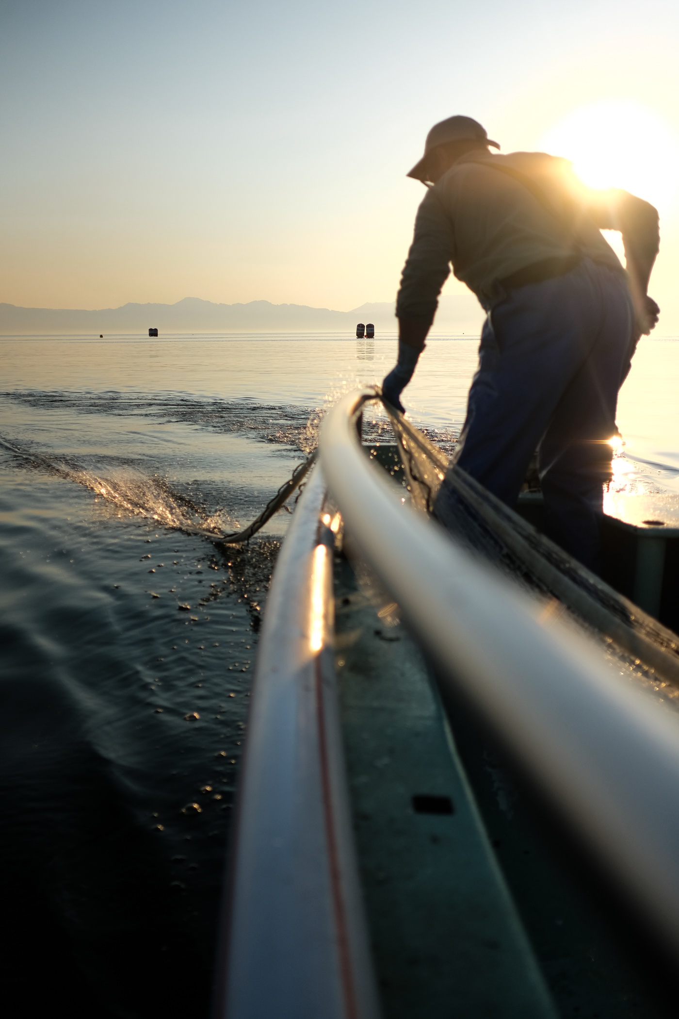 Très attaché à sa région et à son lac, Monsieur Jacquet veille particulièrement à la protection du lac. En botte et en salopette jaune, je me retourne sur le lac au petit matin. Premier lancer de filet c’est Ma YOLE (en patois savoyard, cela signifie RIEN Dans le filet). Pour remonter le filet il utilise un moteur hydropique. J’ai essayé à main nue, c’est très très physique.