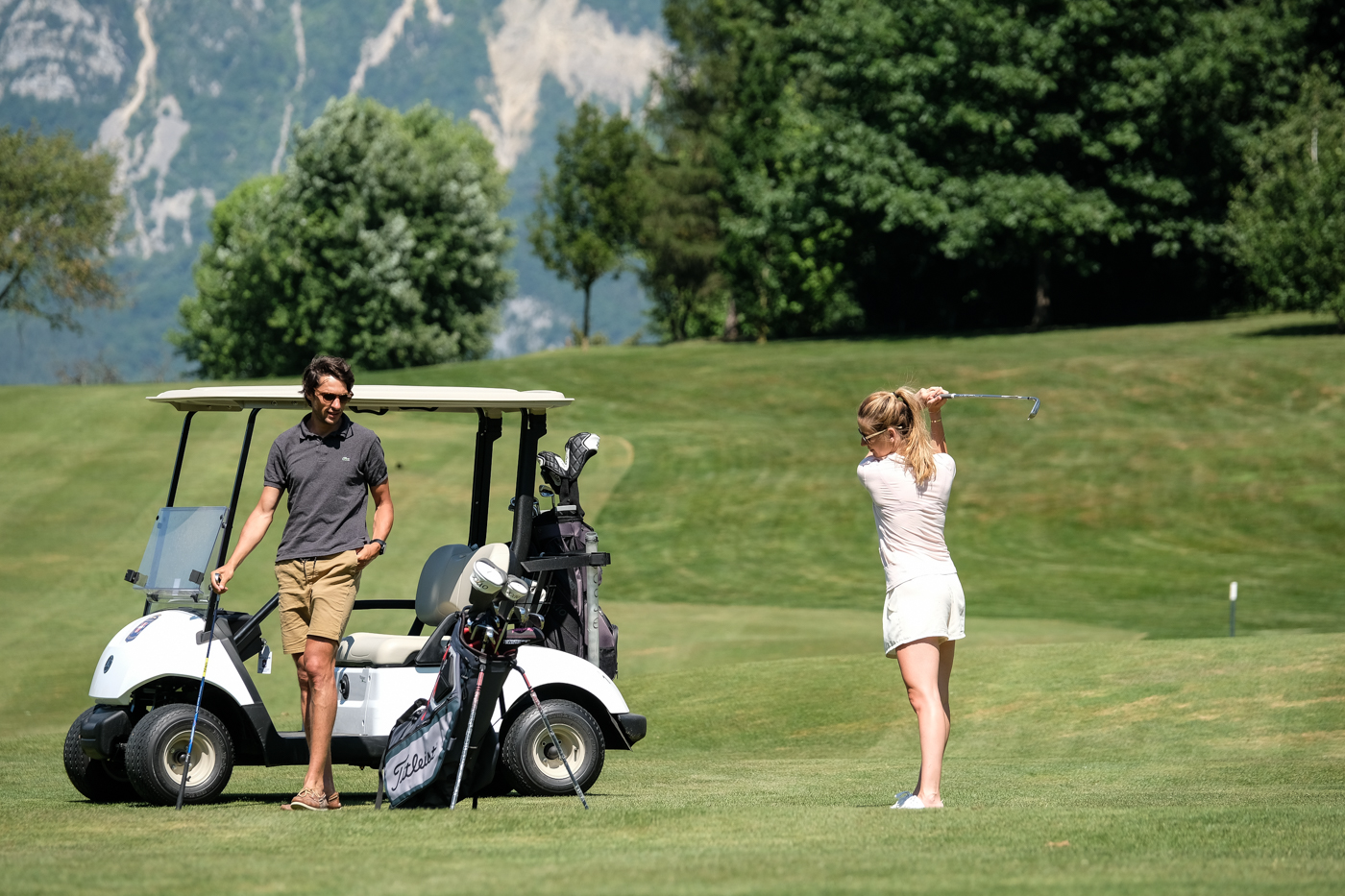 De l’autre côté de la rive, se trouve le Golf d’Aix-les-bains. En effet,  très réputé dans le monde du golf, il ne cesse d’attirer pour des séjours golfiques. Nous avons passé notre journée avec Michel Sandrini, un prof exceptionnel et Aixois pour taper quelques balles. Ce n’était pas notre première expérience. Sans vous dévoiler nos exploits sportifs, Camille se rend au moins un fois par an faire un petit parcours du côté de la Rochelle, au golf de Marsilly .