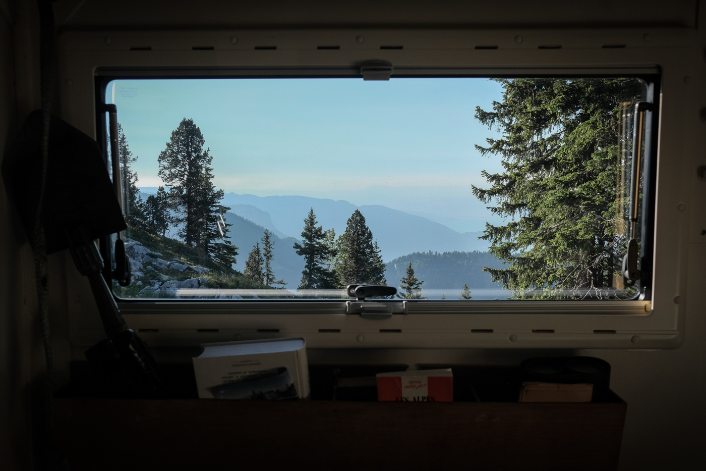 Nos affaires sont à peine rangées, que nous sommes déjà nostalgiques de partir. Du coup je décide de faire durer notre départ en me relaxant dans un sauna panoramique. Tout en bois et incorporé dans la nature, je peux ainsi contempler toute la montagne.