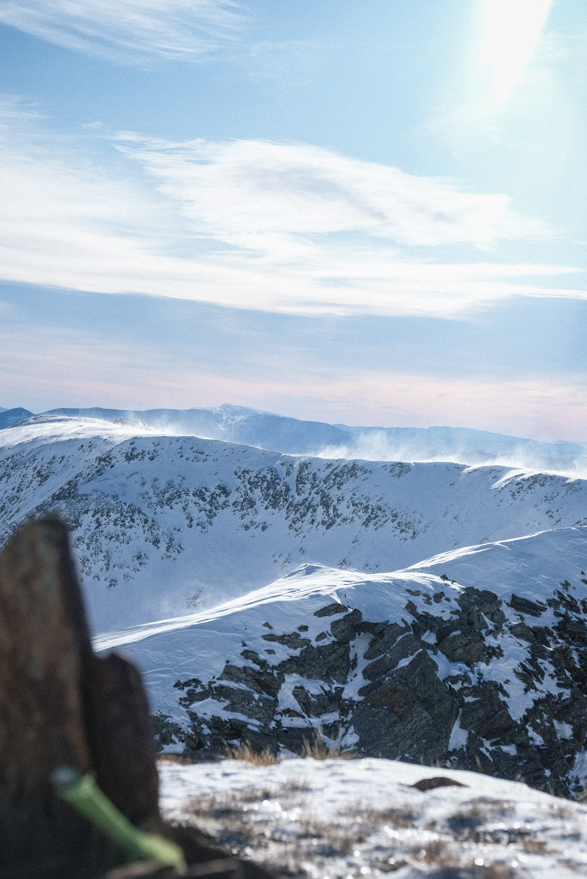Et une fois arrivés au sommet, on fixe nos capuches pour se protéger du vent. Je contemple rapidement le panorama avant d’immortaliser en photo ce beau moment de partage. il faut souligner que la perspective à cette altitude sur les sommets est fascinante. On aperçoit au loin l’ANETO (le plus haut sommet des Pyrénées)