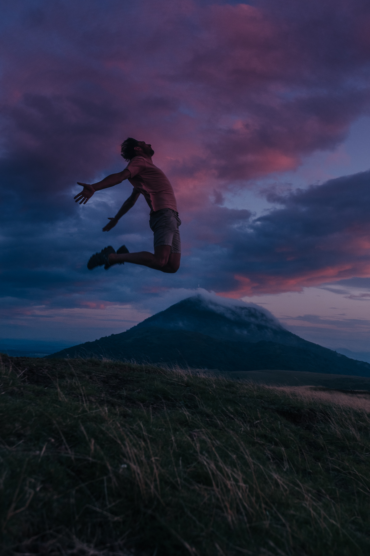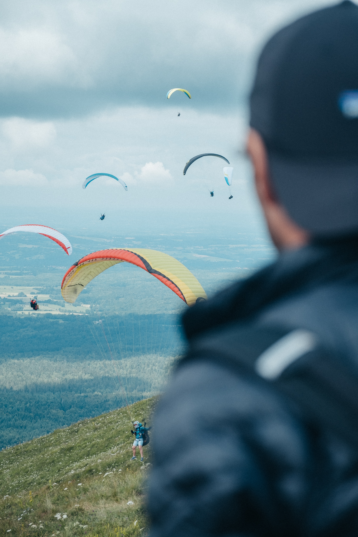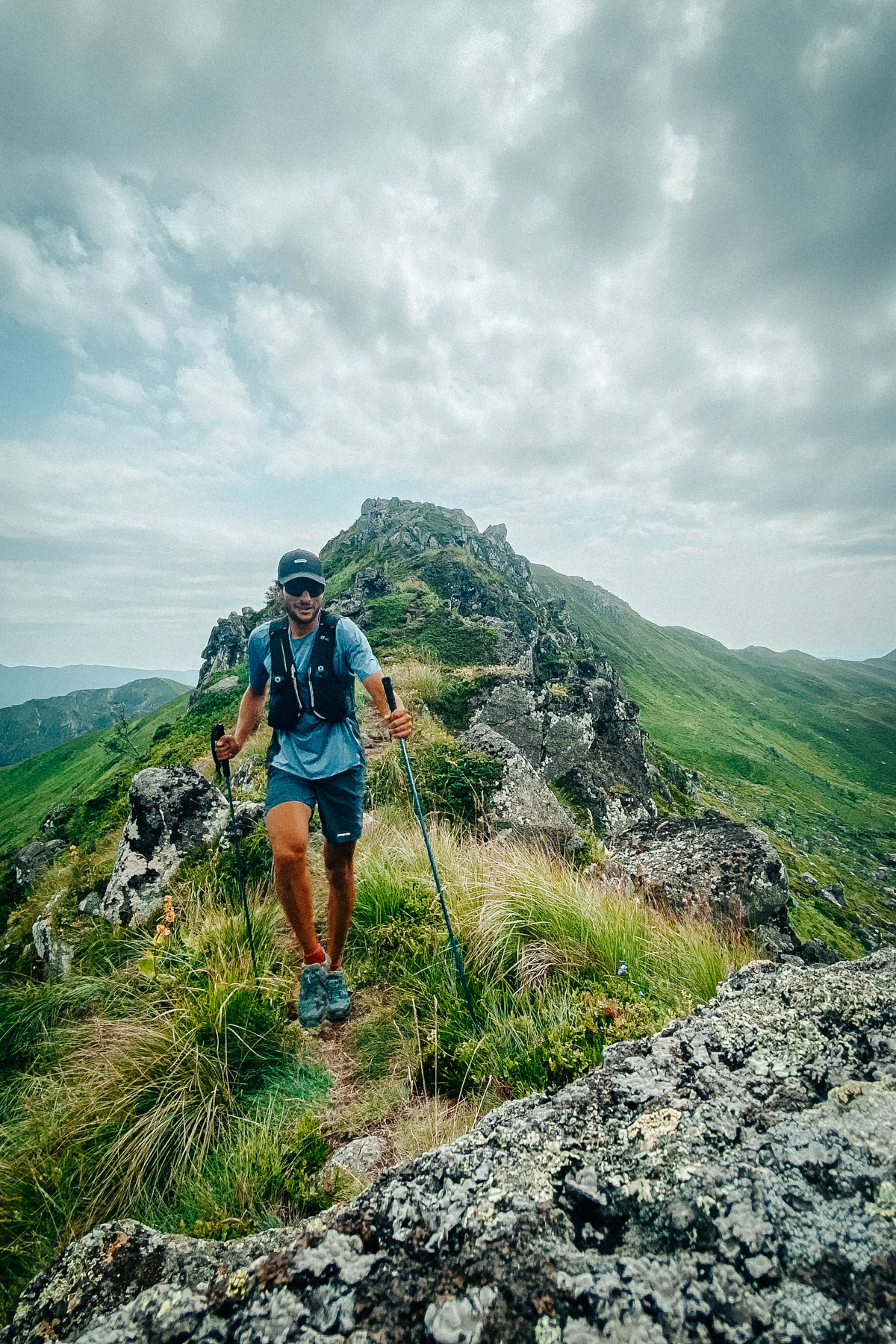 Après un déjeuner rapide, c’est parti pour aller se dégourdir les jambes sur le plus grand volcan d’Europe : Le Puy Mary. Ce site naturel est exceptionnel. Au-delà de paysages uniques, c’est un beau terrain de jeu pour pratiquer une multitude de sports : Trail, rando, vélo sur ces cols mythiques, mais également parapente, pour le plus grand plaisir de Camille.