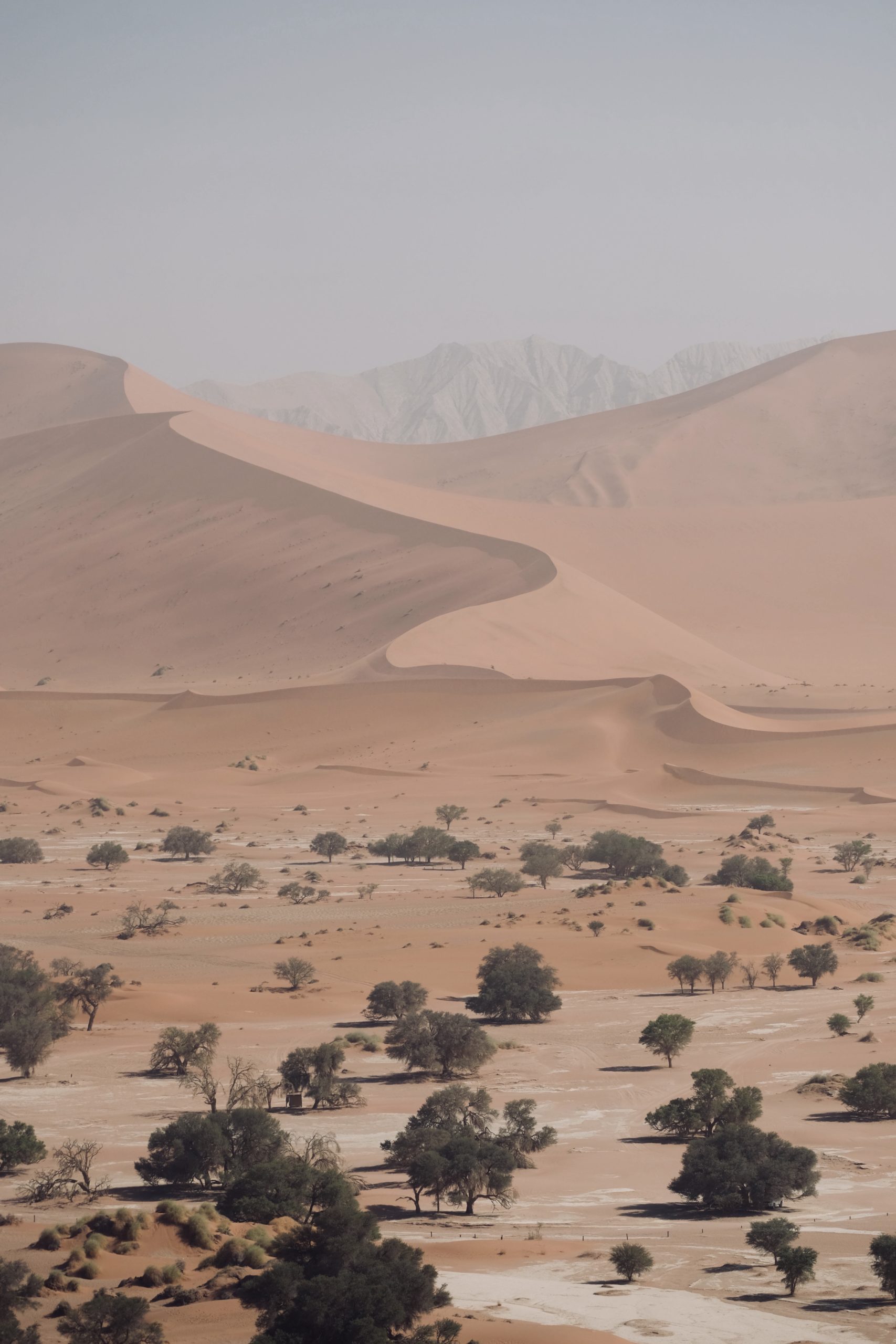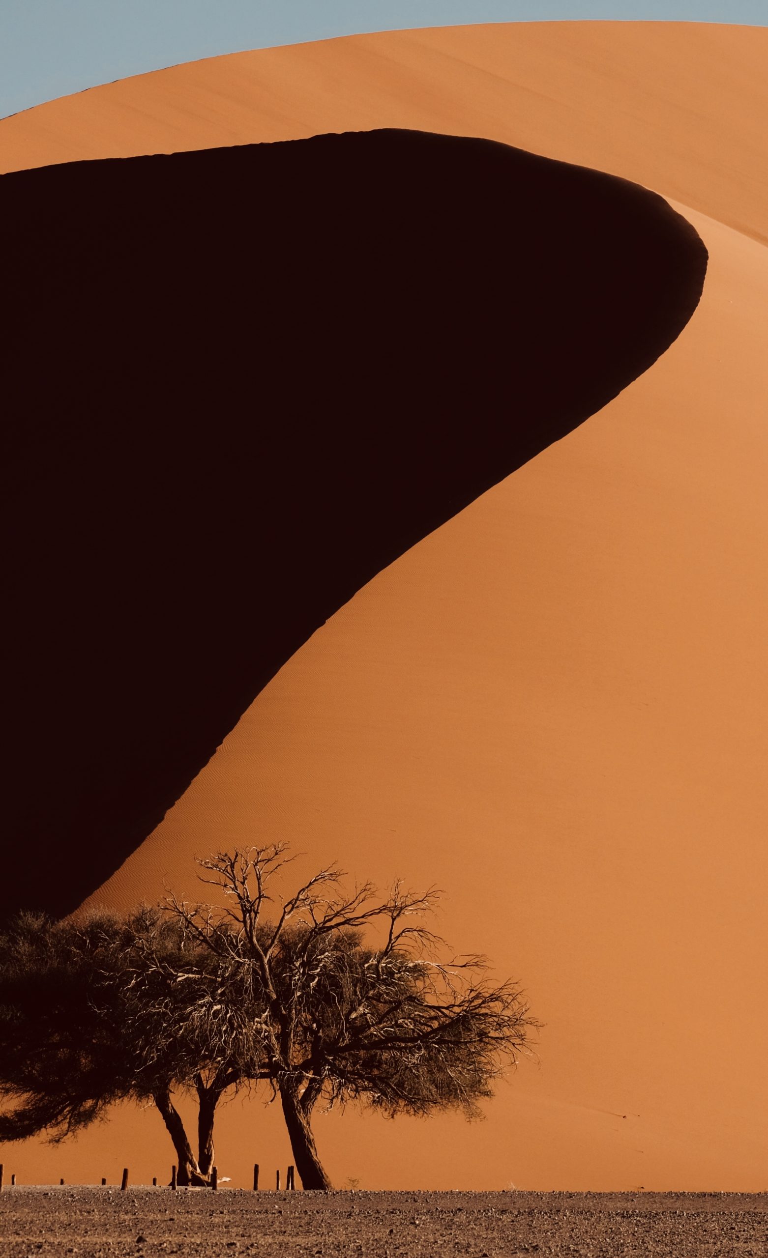 Et le soir, on décide de grimper à la Dune 45 située au 45ème kilomètres du parc de Sossusvlei. Les couleurs sont spectaculaires. Un panorama d’images somptueuses au coucher du soleil. La végétation se fait rare mais à ses pieds il y a trois arbres qui se distinguent.