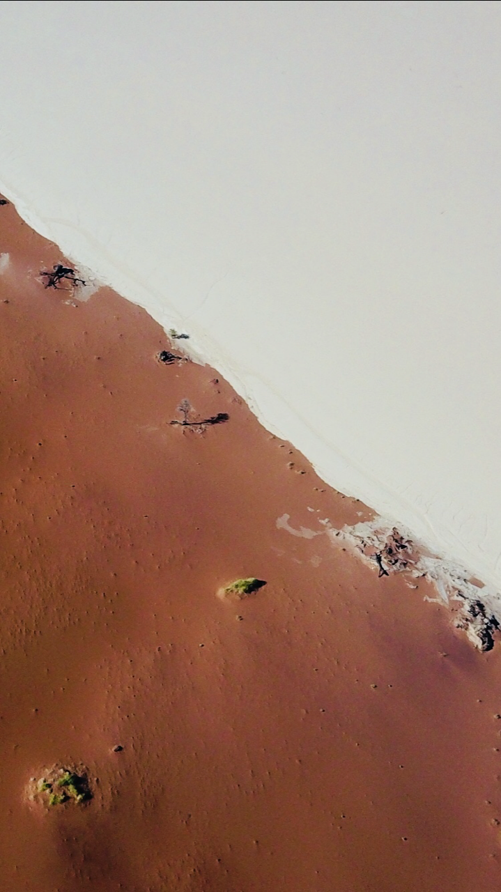 Et quand il s’agit de redescendre en direction de cette immense étendue blanche, c’est pieds nus que l’on se jette dans la pente. Un petit bruit de frottement de sable sous nos pieds raisonne à chacun de nos pas dans ce sable encore frais. C’est magique et tellement rapide dans ce sens. Nous avions DEADVLEI (désert de sel) pour nous tous seuls. Une vraie belle surprise de courte durée.