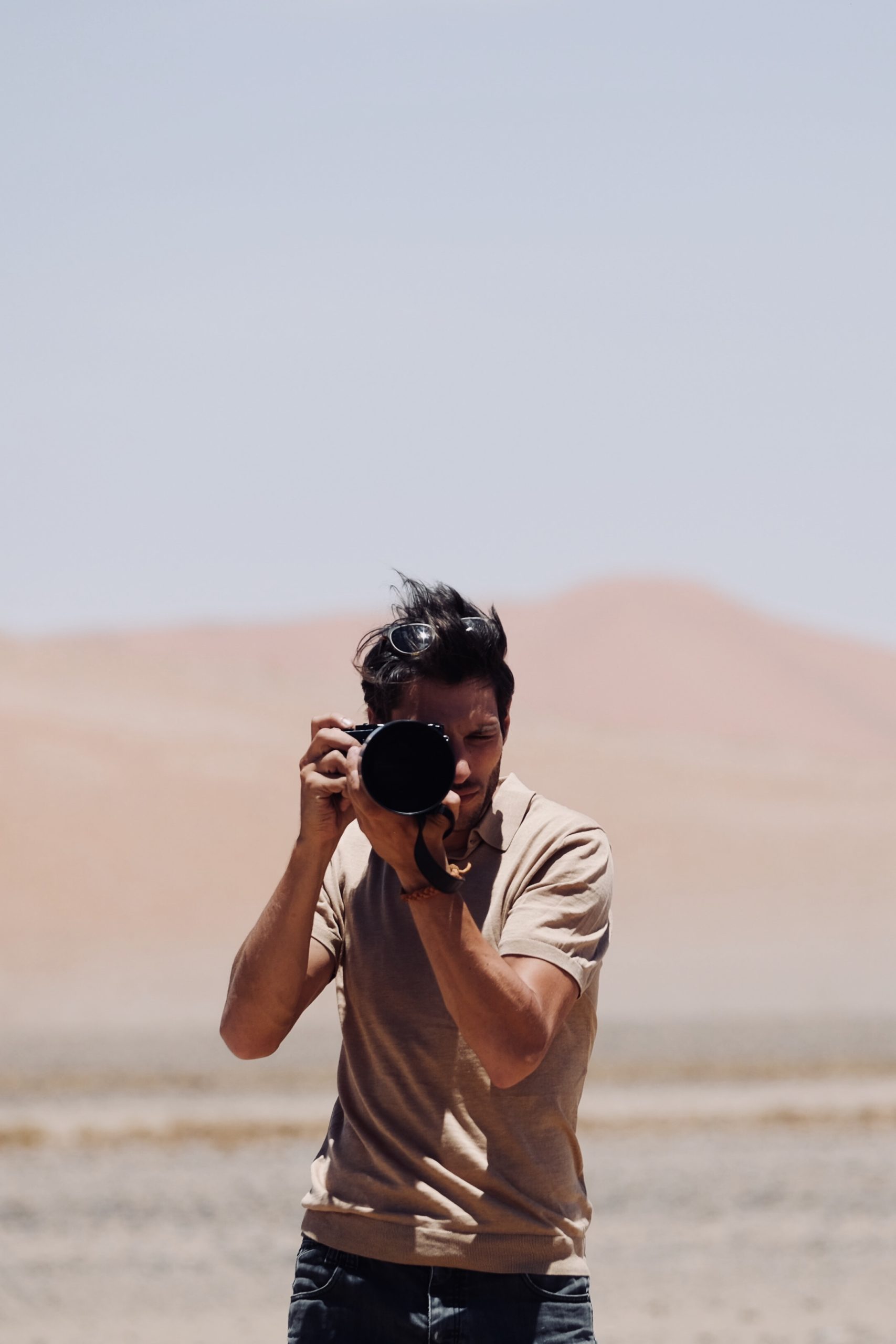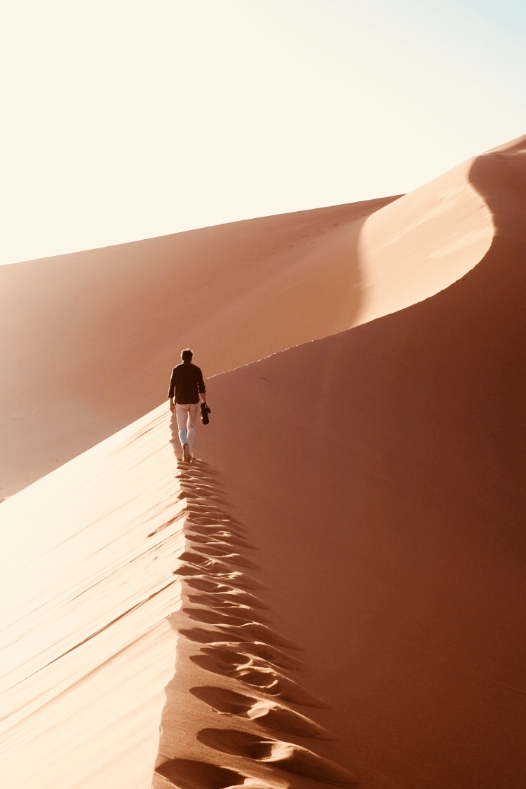 Seuls à laisser les premières traces de la journée, entourés d’immenses étendues de sable.