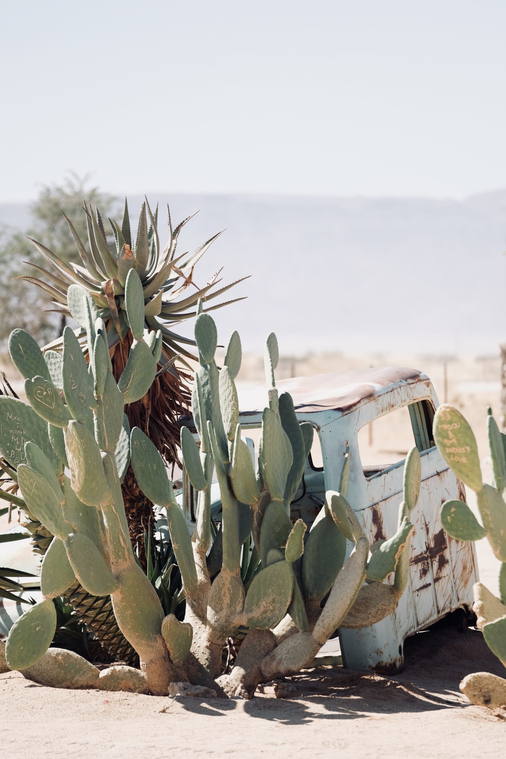 Solitaire est un lieu de passage des voyageurs. Une station essence avec ses jolis cactus en témoigne.