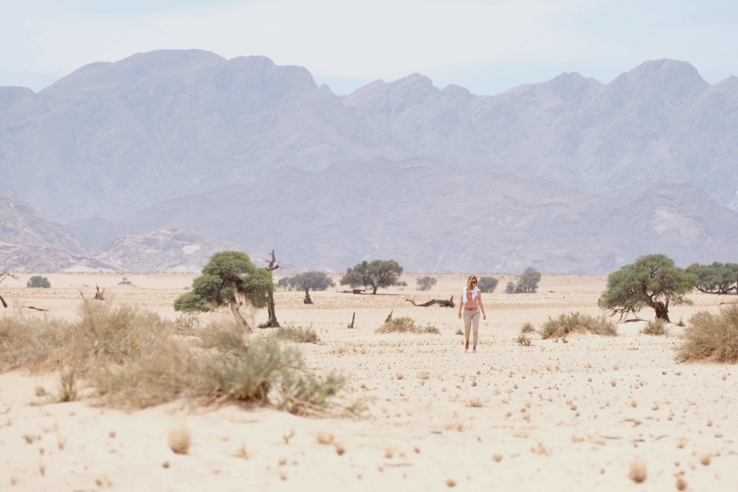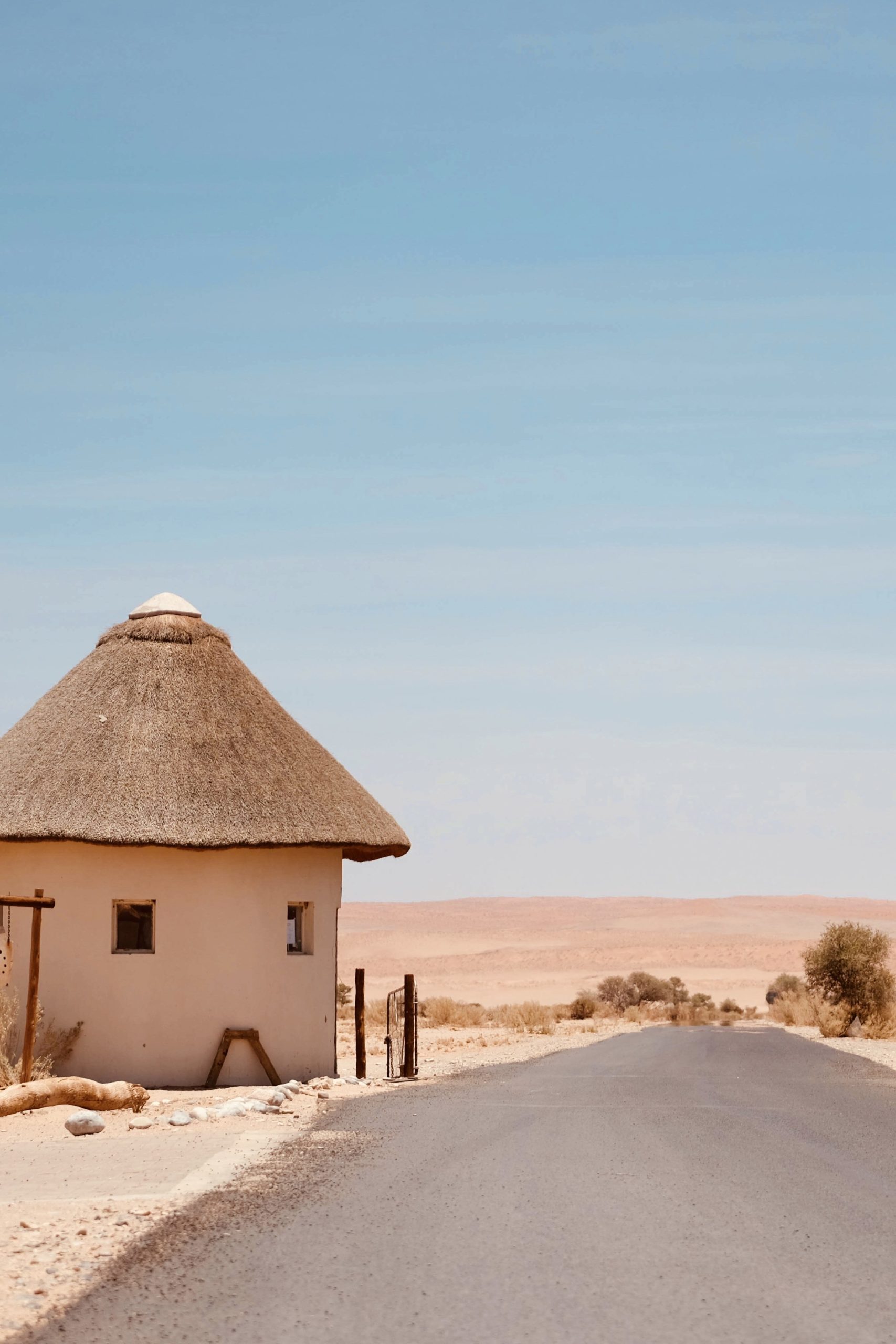 La route qui nous attend aujourd’hui est assez longue. On emprunte la C14. Cette autoroute rectiligne namibienne sur laquelle on observe un sable blond doré se déposer au gré du vent. Il fait une chaleur écrasante à brouiller le paysage.